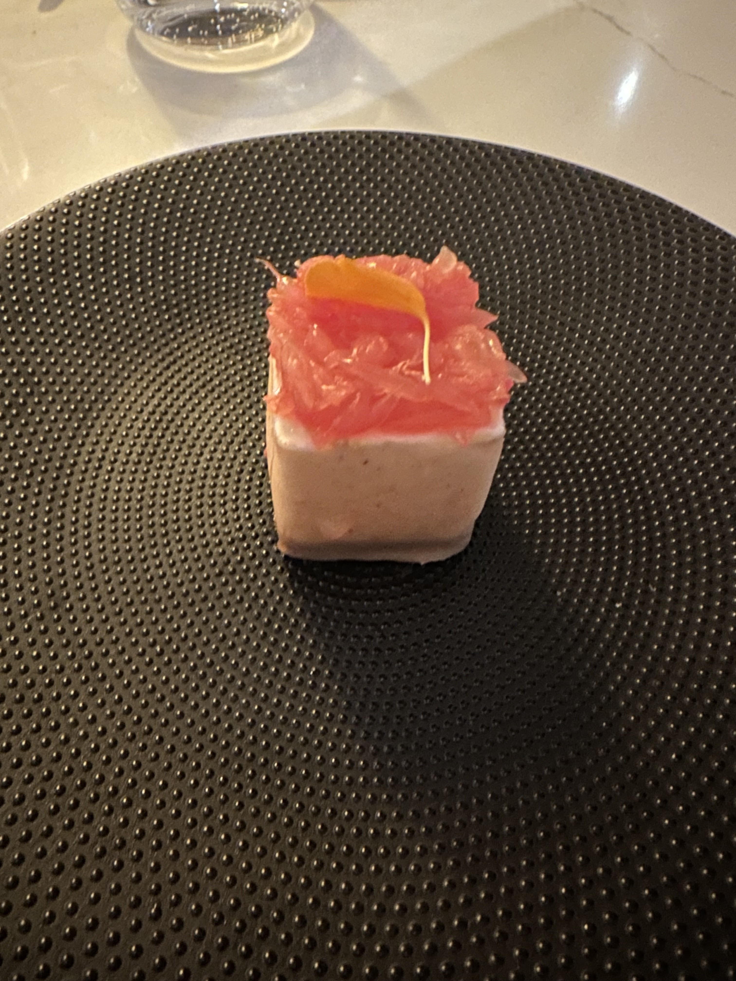 Nourriture : Ma note globale est de 4 car pour le prix de cet « omakase », je m'attendais à plus de « surprise et délice ». Qu'est-ce que cela signifie? Accords innovants et équilibre salé/sucré, superposition de textures (croquant, crémeux, moelleux, moelleux). Les plats salés étaient des versions largement améliorées des plats japonais incontournables. L'avant-dessert et le dessert étaient plus intéressants. Le service : Étant une Américaine d'origine japonaise mariée à un Français, j'ai pu entendre les différents membres du personnel de service expliquer les plats à mes voisins et à notre table. J'ai beaucoup appris en participant à plusieurs reprises à l'apprentissage des descriptions des plats et des accords mets et vins. J'exprime ma gratitude à la direction pour l'embauche et la formation du personnel afin de garantir une excellente expérience culinaire. Ambiance : je suis tout à fait d'accord avec les autres critiques pour dire que le 2ème étage est très silencieux (idéal pour entendre votre partenaire à manger, mais pas non plus pour l'intimité) et plus formel et peut-être plus raide ? (Vous pouvez regarder le personnel, ils peuvent vous surveiller) En sortant du deuxième étage, j'ai remarqué que les sièges du bar semblaient plus conviviaux malgré le fait qu'il y ait des inconnus assis côte à côte. La bonne nouvelle est que vous pouvez choisir l’environnement qui correspond à ce que vous souhaitez.