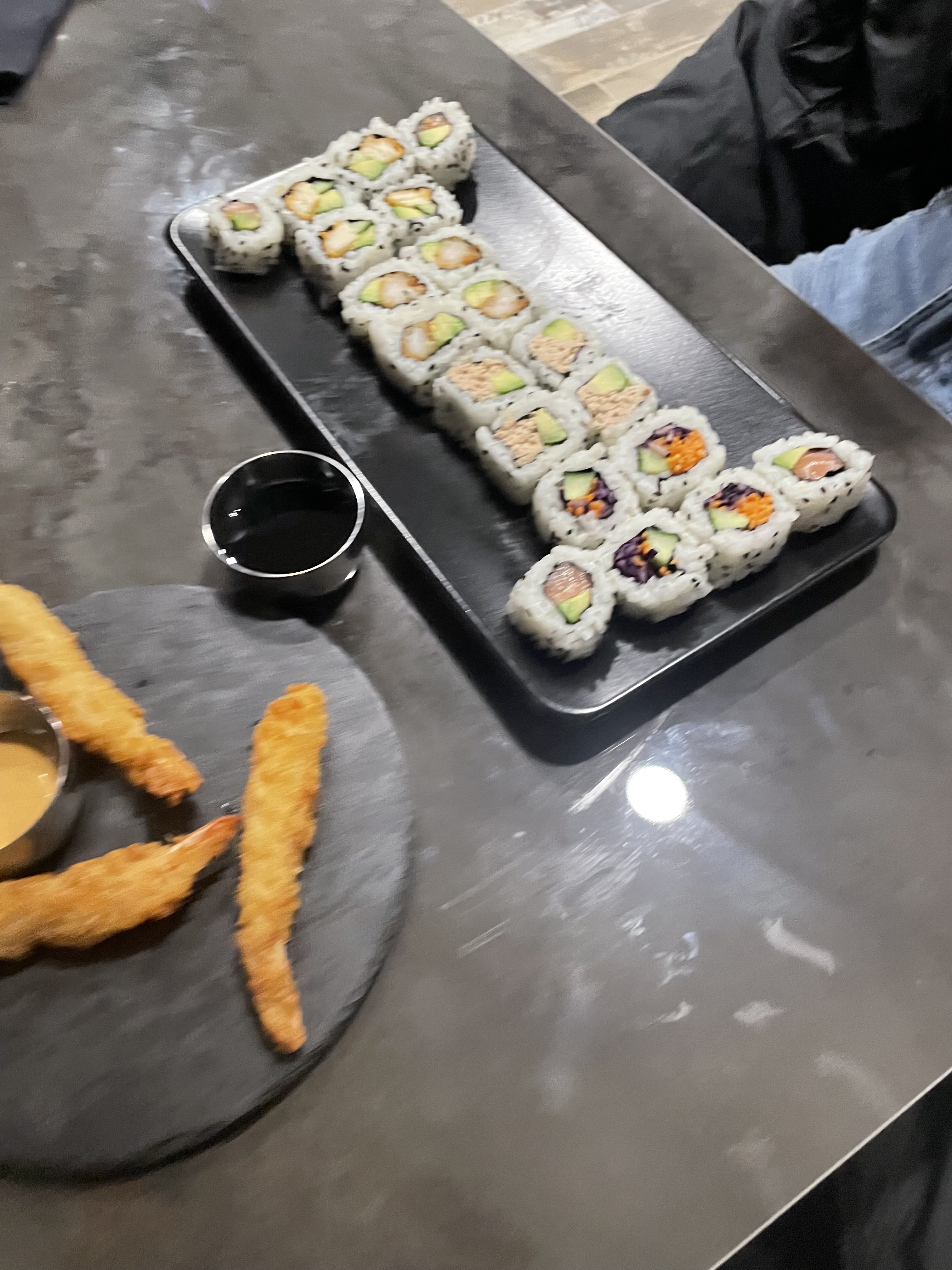 Agréablement surprise par ce lieu où le personnel et très sympathique j ai eu à faire à la jeune femme au comptoir qui s est mise en 4 pour que notre attente ne soit pas trop longue malgré leurs nombreuses commandes via uber Eats. Les plats sont très bons nous nous sommes régalés et le prix et abordable bref j ai trouver mon nouvel endroit pour manger sushi Merci à toute l équipe et au cuisinier aussi qui fait de très bon sushi :)