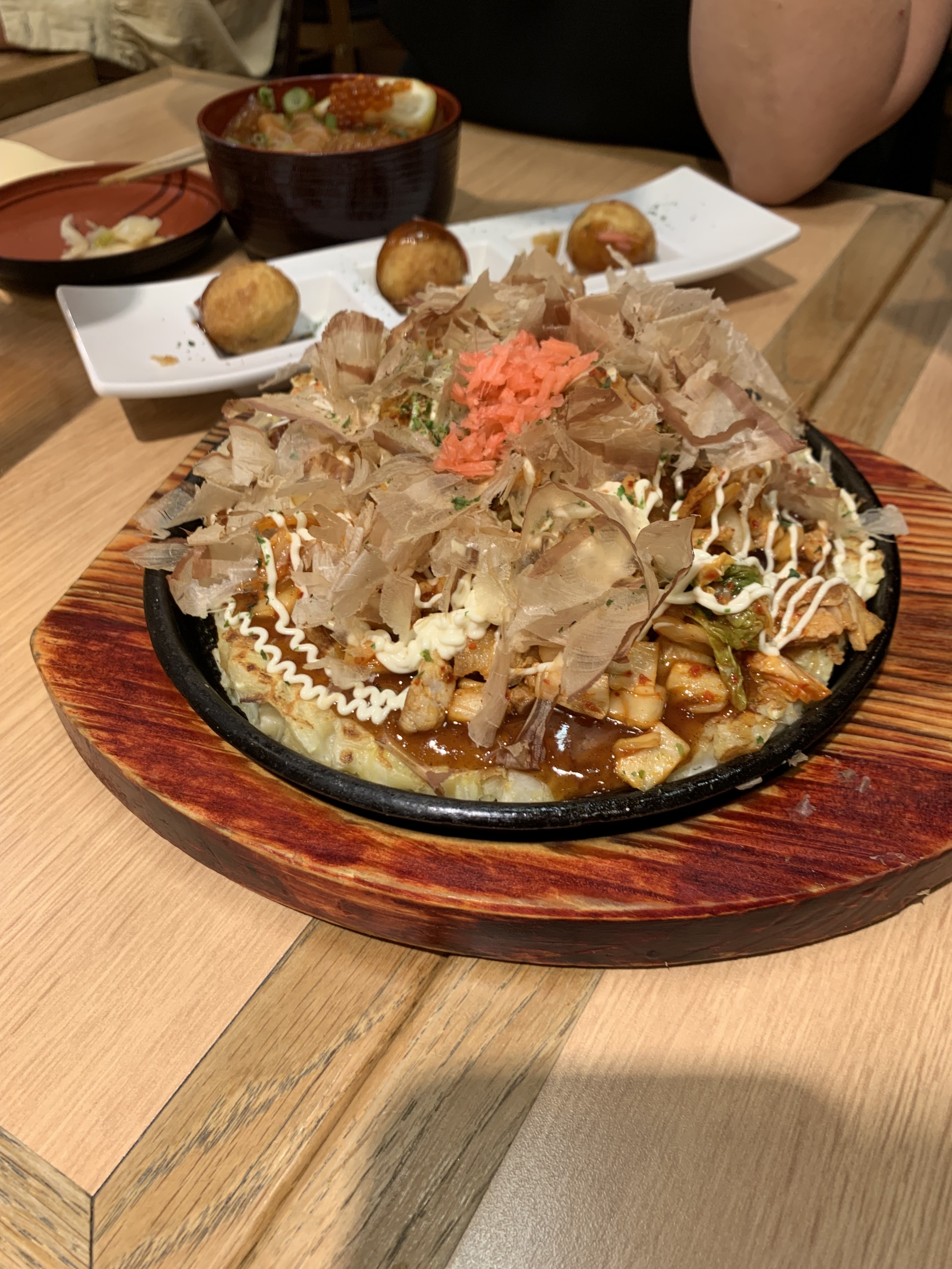 De-li-cieux .. manger au comptoir en voyant faire les okonomiyaki par les cuistots , incroyable…