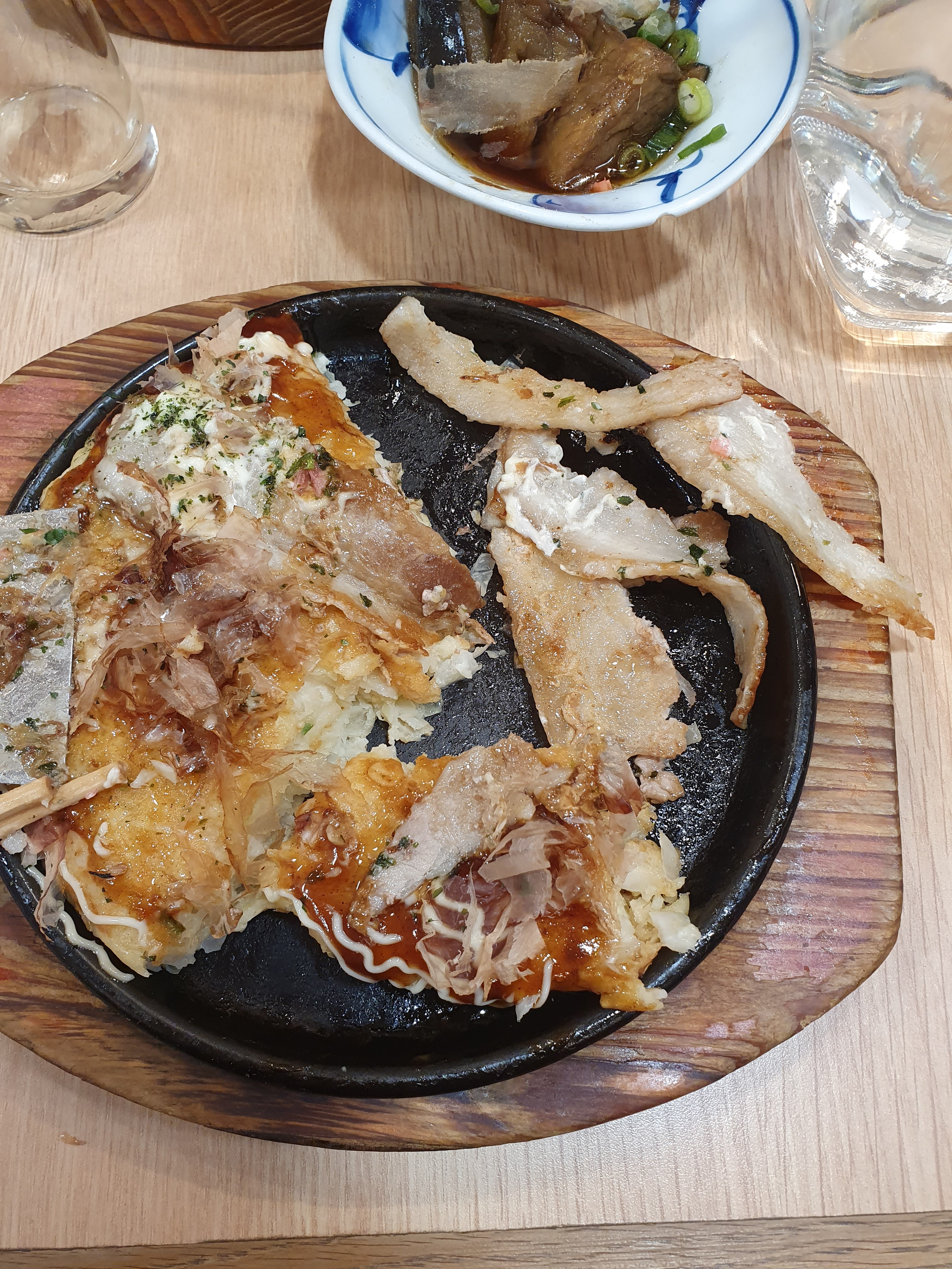 Nous sommes passés avec ma compagne dans se restaurant. Nous avons pris un Okonomiyaki au porc et un Katsu Curry. Pour ma part, l'Okonomiyaki était très bon, et en se qui concerne la plat de ma copine, le porc Tonkatsu était un peu sec, mais sinon c'était très bon. On en eus pour 28€ pour les deux plats et c'est copieux. Juste la place pour une pâtisserie dans leur boutique en face du restaurant 😋