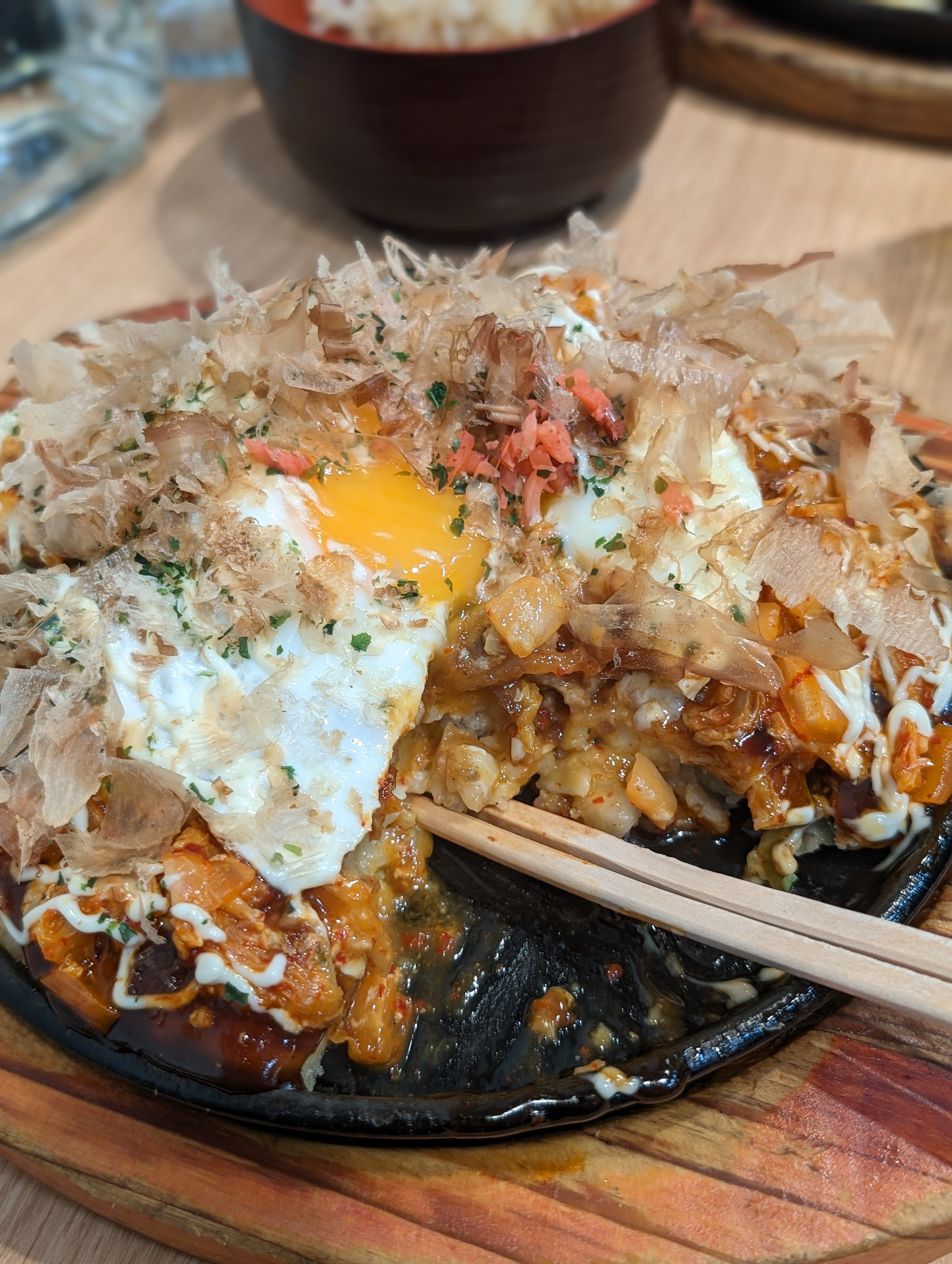 Je mets la vidéo en partage, je crois que c'était Okonomiyaki ! Tout à fait surprenant, délicieux et... nourrissant !