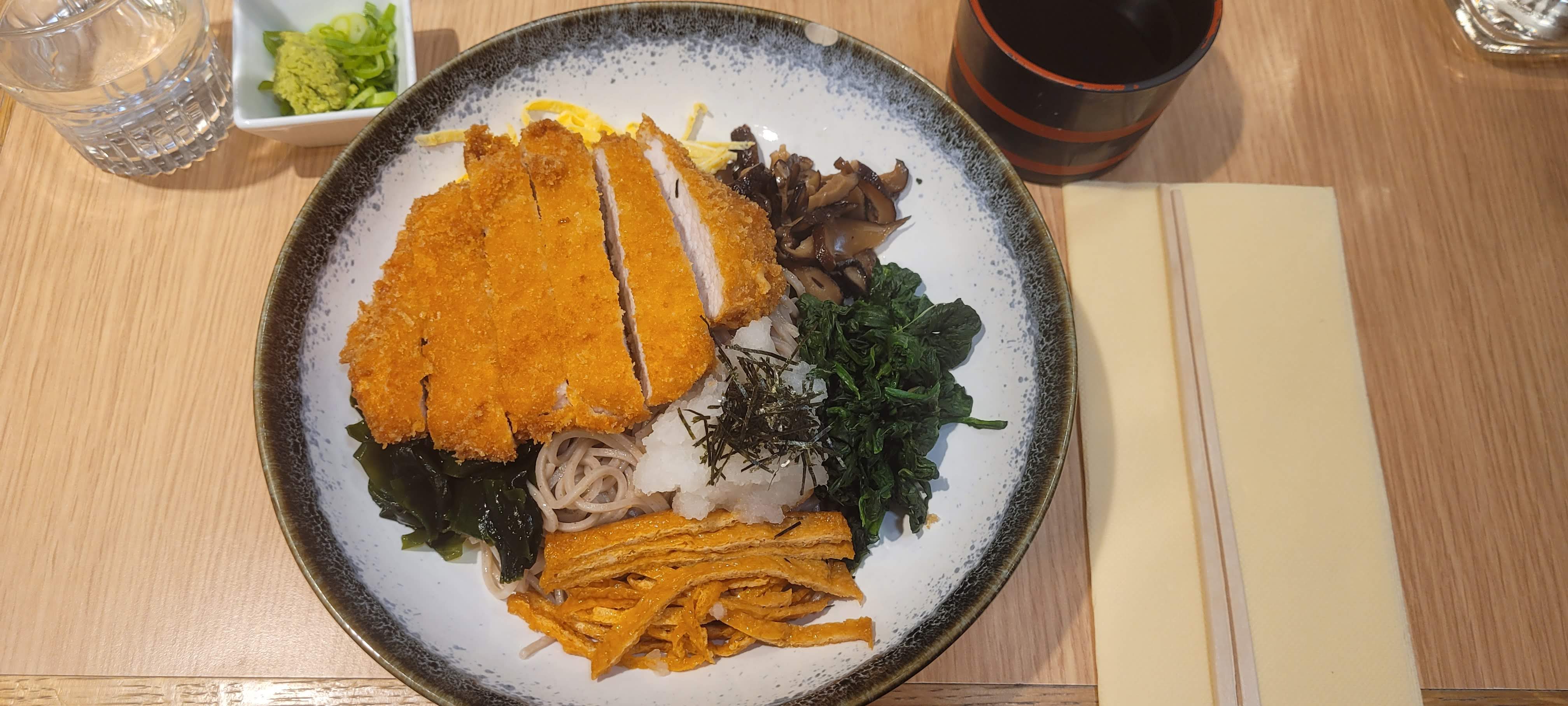 Franchement pas terrible, soba en soupe (chaud), passez votre chemin, le bouillon est fade et la les sobas sont un peu trop cuits... bref, allez prendre un lamen à côté avec un bouillon beaucoup plus goûteux, vous serez moins déçu. Prix un peu cher pour ce que vous mangez en terme de qualité mais pas en quantité.