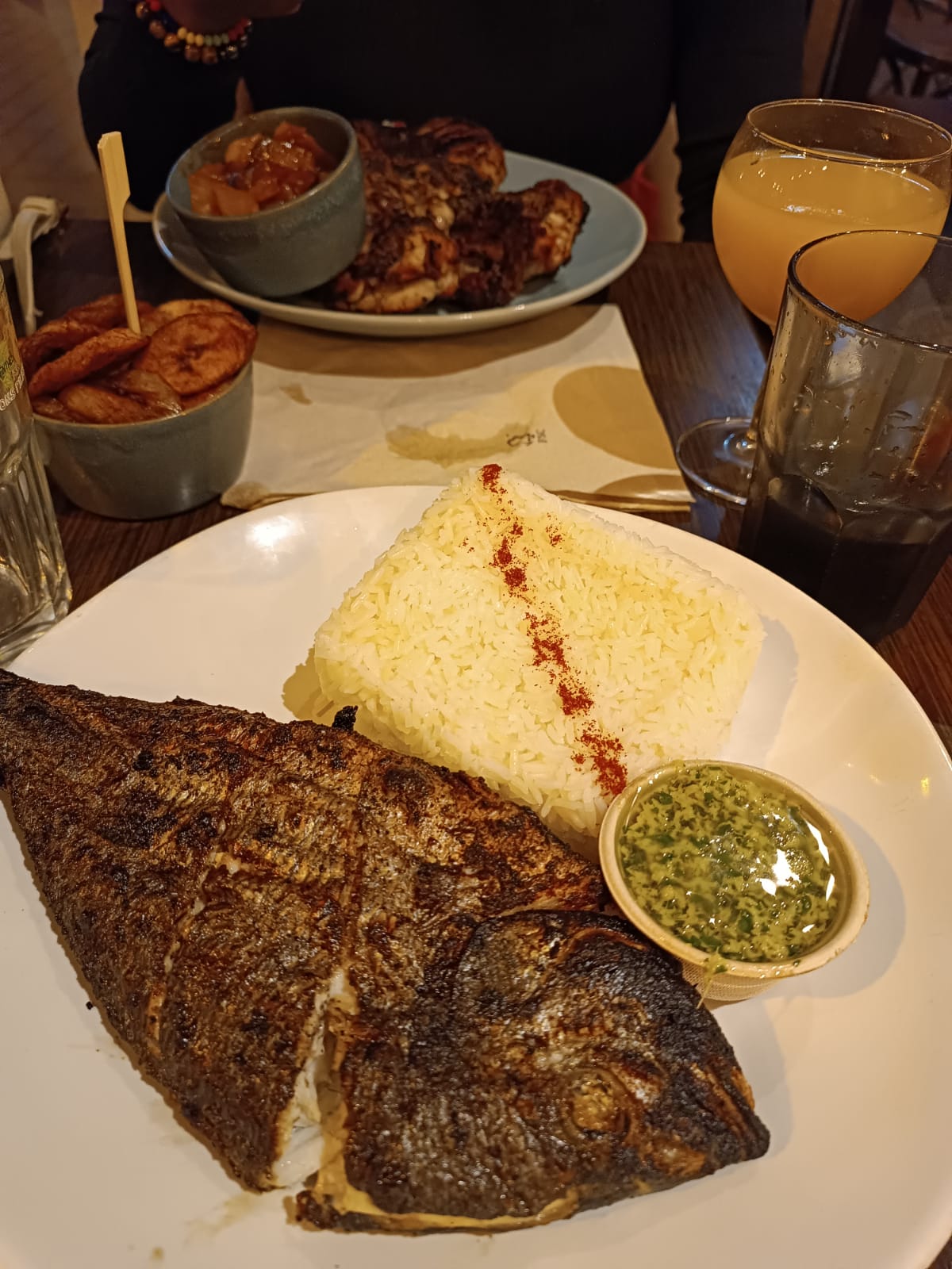 La nourriture bonne et savoureuse reviendra👍🏽 Je n'ai jamais été déçu de la cuisine africaine que j'y ai mangée, notamment du poisson grillé avec une petite sauce verte à part (voir photo). Ne change rien c'est très bien❤️