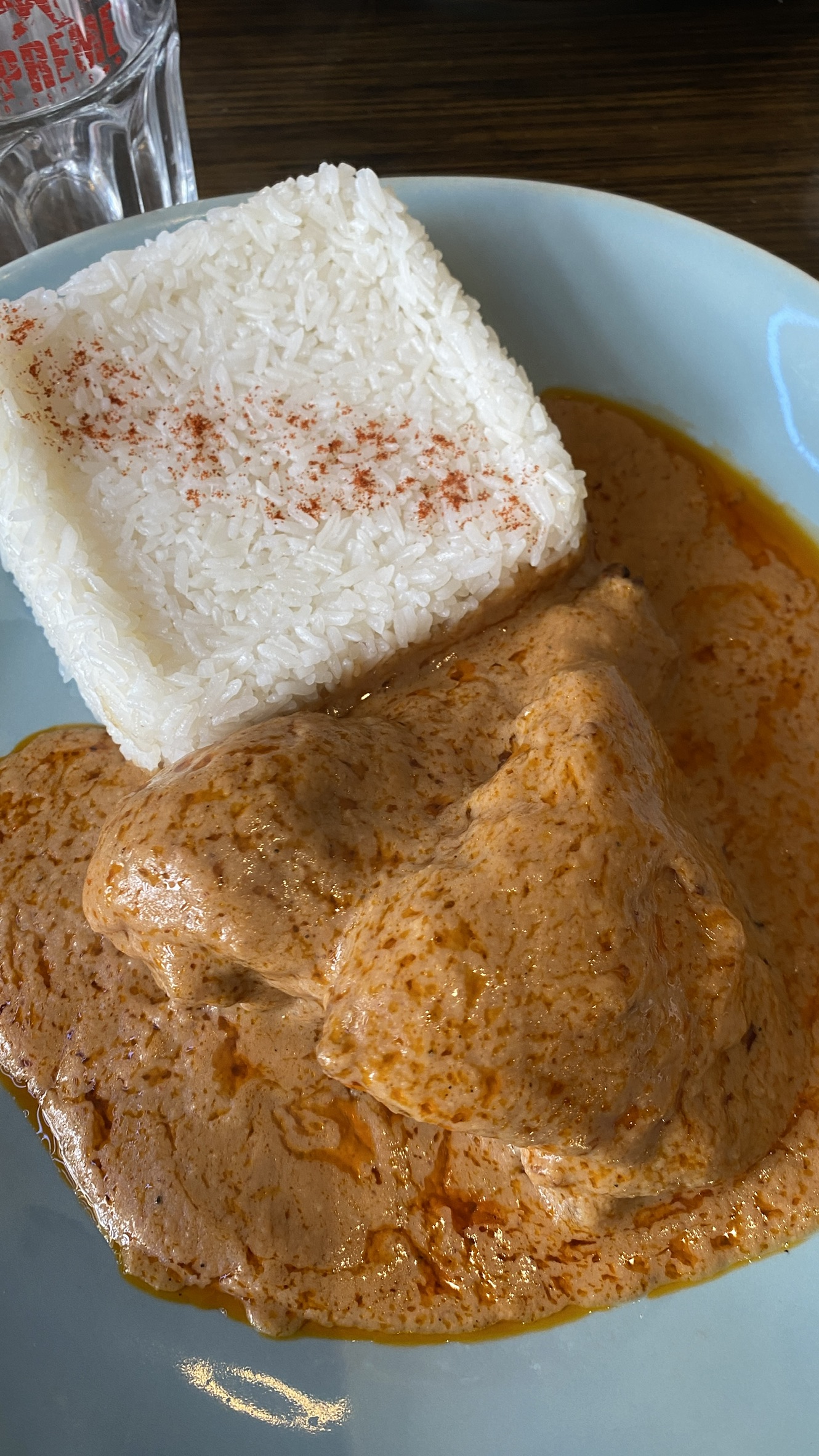 Mafé / tiep / poulet braisé, tout est vraiment super bon ! La sauce arachide ou les légumes qui accompagne le poulet sont juste délicieux !! Je recommande pour le midi