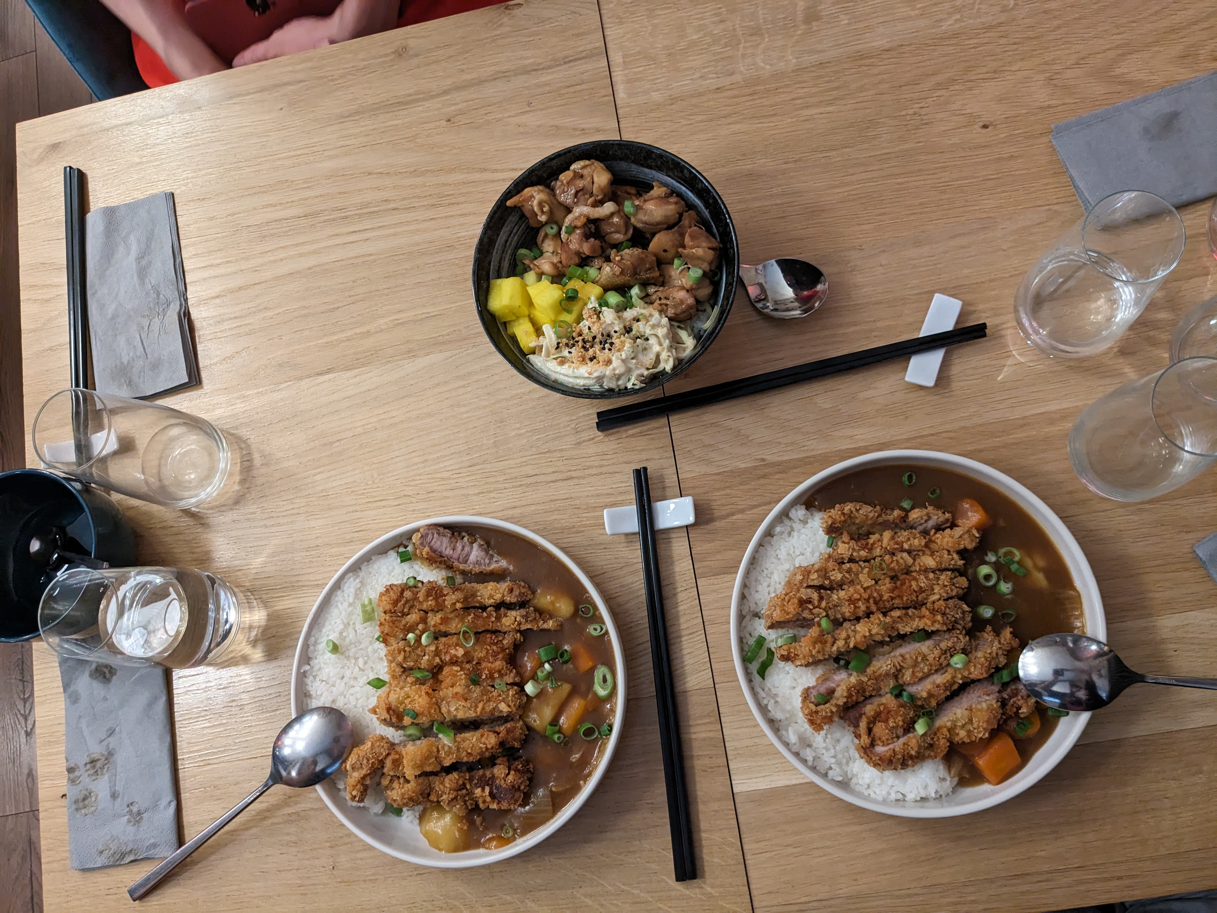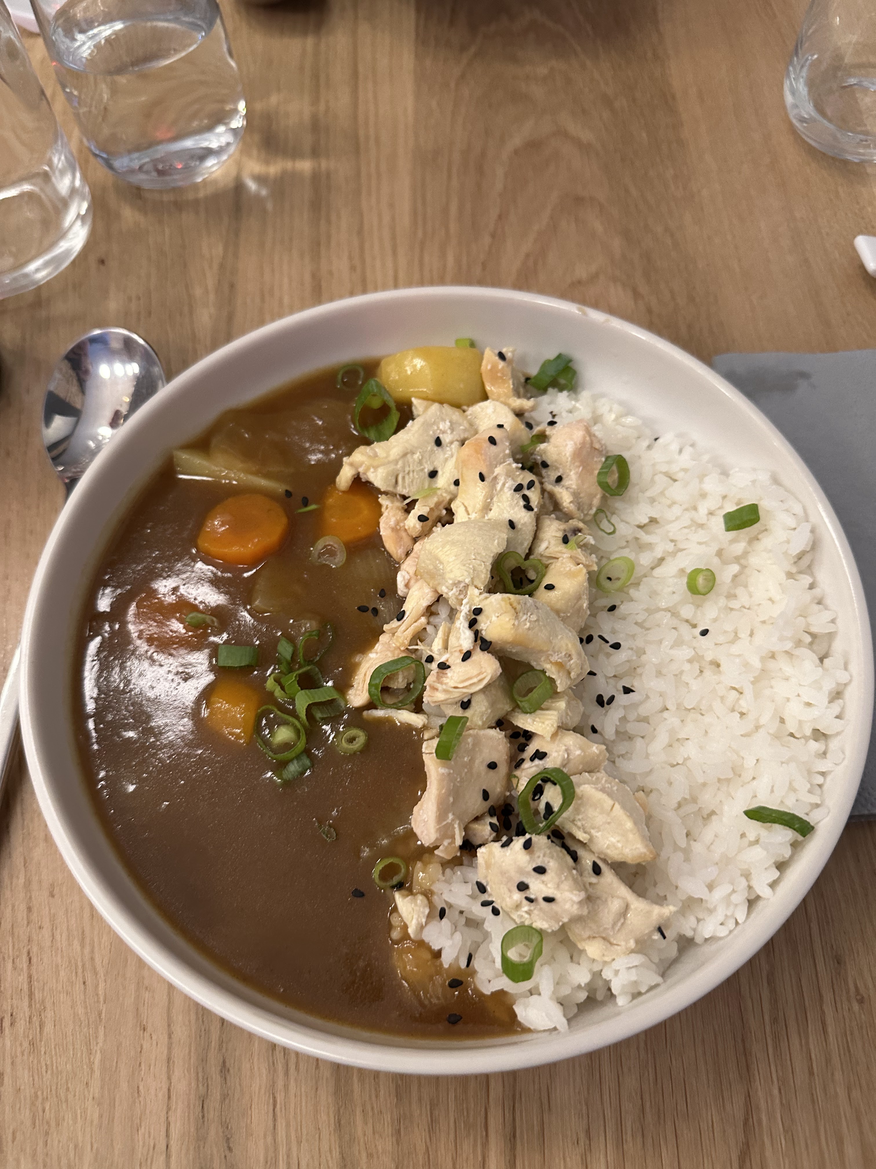 Si vous cherchez un bon curry c’est pas ici que ça se passe ! Plat très bien équilibré autant dans les saveurs que dans la quantité. Le curry était très doux et légèrement épicé, le porc cuit et pané à la perfection ! J’ai également testé les gyozas au bœufs faits maison, très goûteux ! Les prix sont très raisonnables, j’en ai eu pour 22,50€ pour entrée, plat, boisson. Le service est très rapide et agréable. Le tout manque tout de même peut être d’un peu d’ambiance, la musique était très basse mais c’était finalement au profit de tous bien s’entendre à table ! J’y suis allé suite à un poste trouvé sur les réseaux sociaux et je ne regrette absolument pas ! J’y reviendrais avec plaisir dès que je repasse dans le coin !