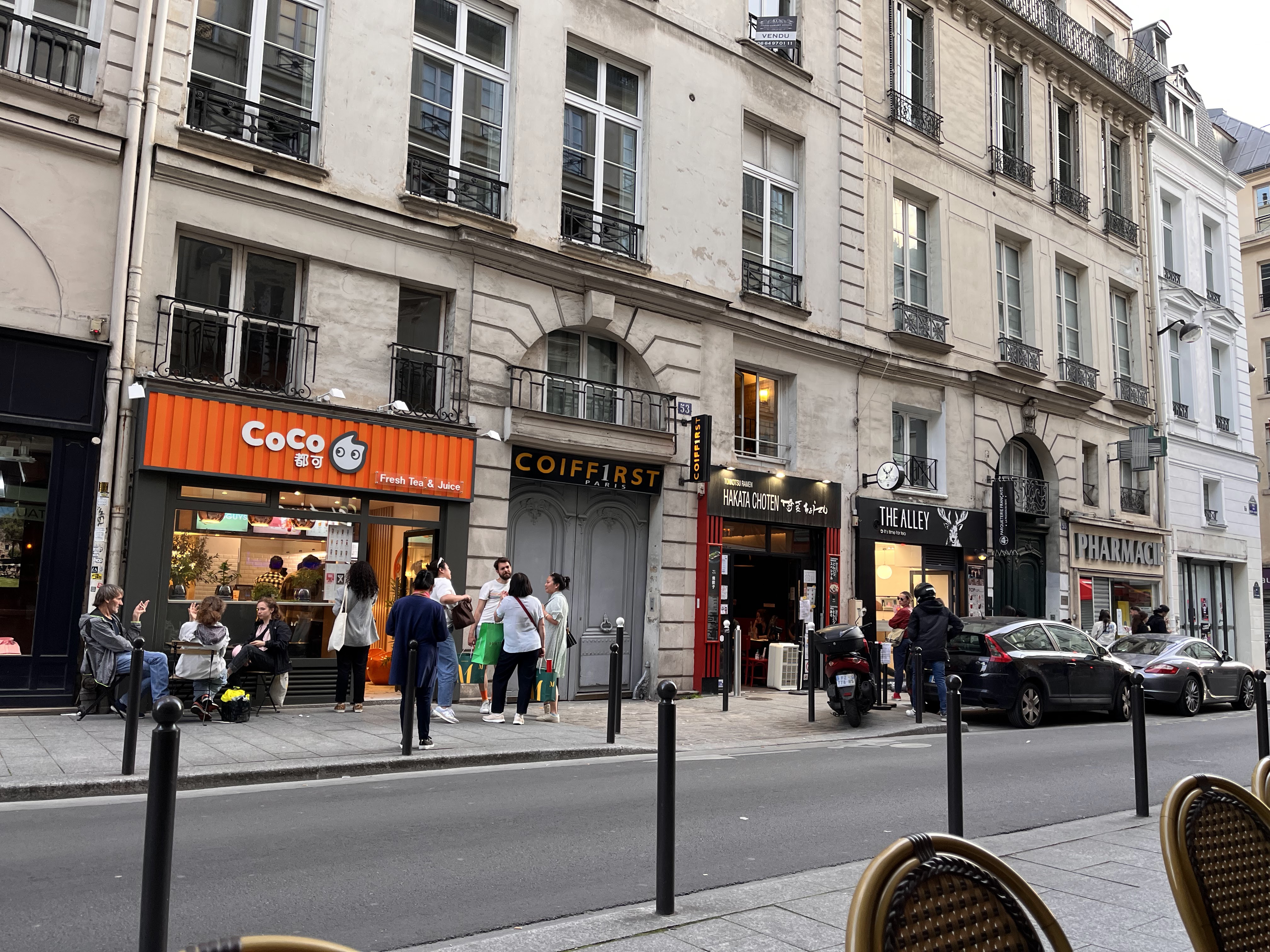 Restaurant japonais avec terrasse juste à côté du passage de Choiseul . Service rapide très bon accueil . Un étage réservé davantage en hiver si la terrasse est fermée.