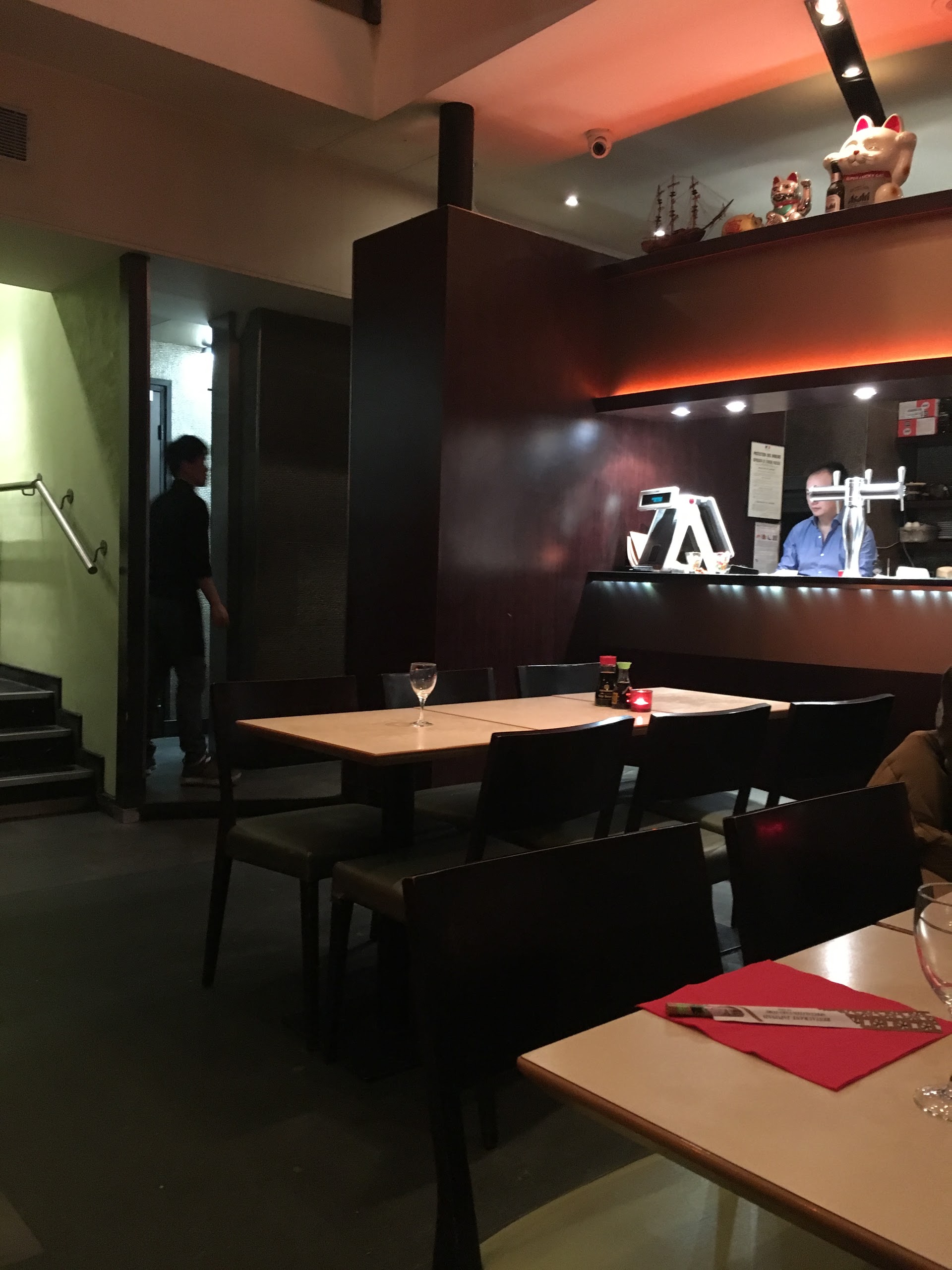 Accueil rapide et sobre, on nous installe à table sans nous saluer. Service rapide et très bons sushis et plats, quantité plutôt légère pour le prix.