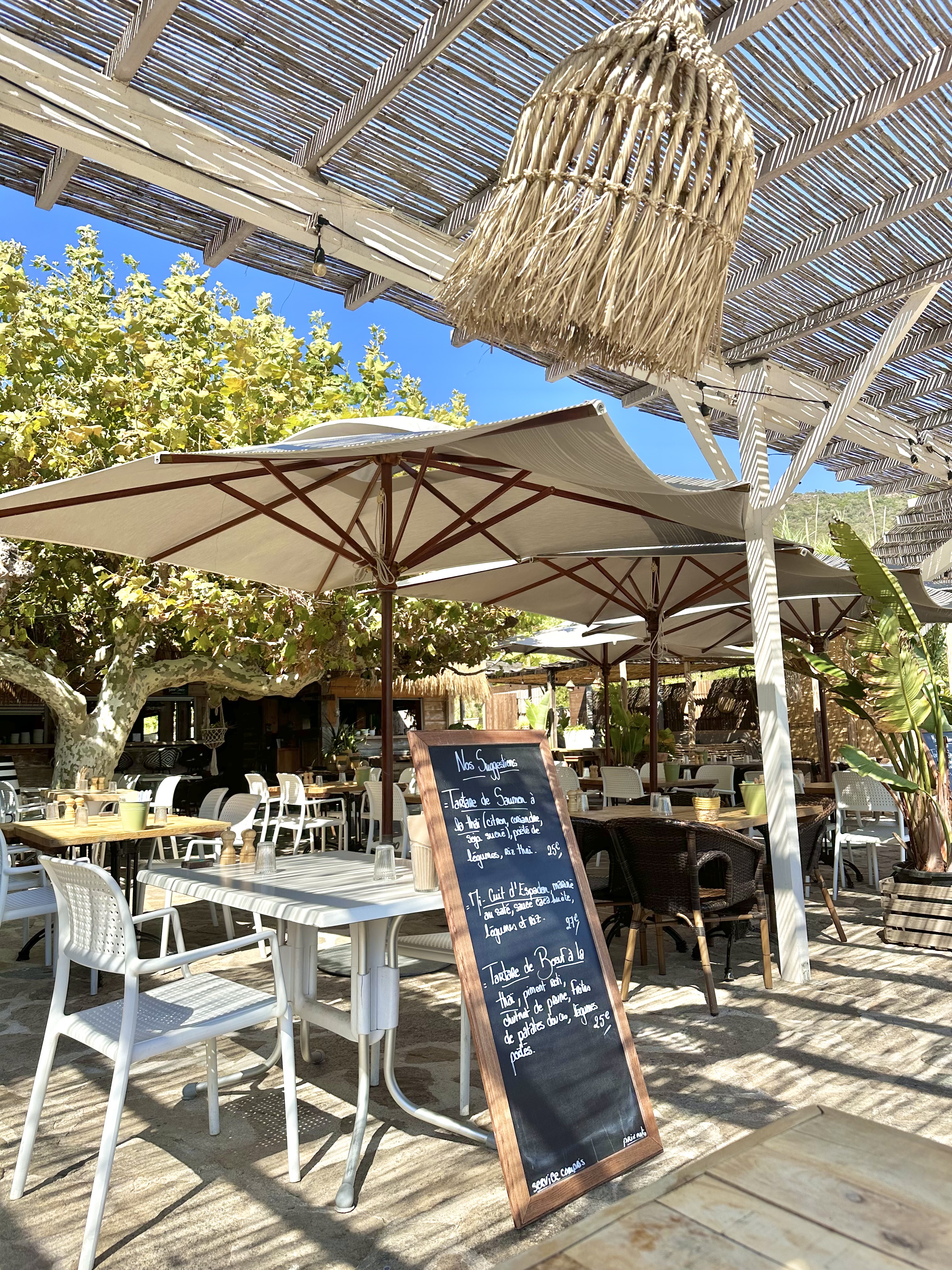Petite plage confidentielle accueil super sympa et détendu cuisine à la fois sans chichi mais élaborée. La patronne est un amour. Service un peu lent mais vu la beauté du cadre autant prendre son temps.