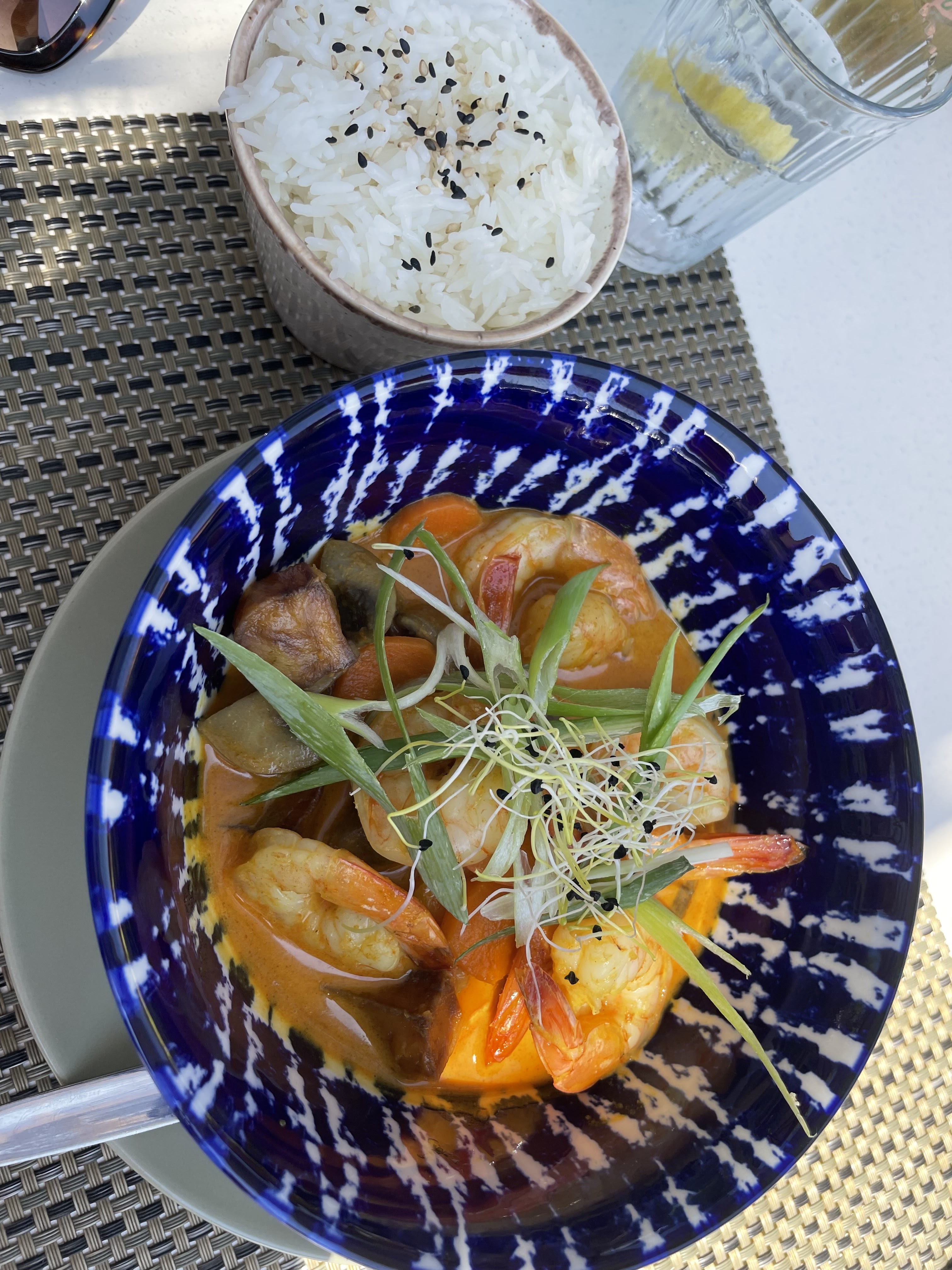 Cela commence par un cadre et un accueil magnifique. Ensuite vient l’entrée, nous avons partagé une salade thaï qui était vraiment trop bonne! Fraiche, bien épicée, super fine, comme la bas! En plat, nous avons pris les crevettes au curry rouge et le tataki de saumon… tous les deux délicieux ! Le personnel et le patron sont très sympas aussi, bref, nous reviendrons certainement !