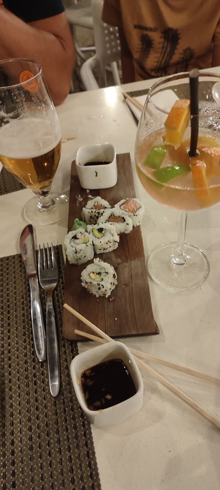 Sauce pimentée non détaillée : coriandre dedans et tout le monde n aime pas Demande de plateau californien : refusé au prétexte que le sushiman était malade D autres personnes de ma connaissance présente en même temps on eut le plateau californien!!!! Foutage se gueule ou refus de nous servir ????