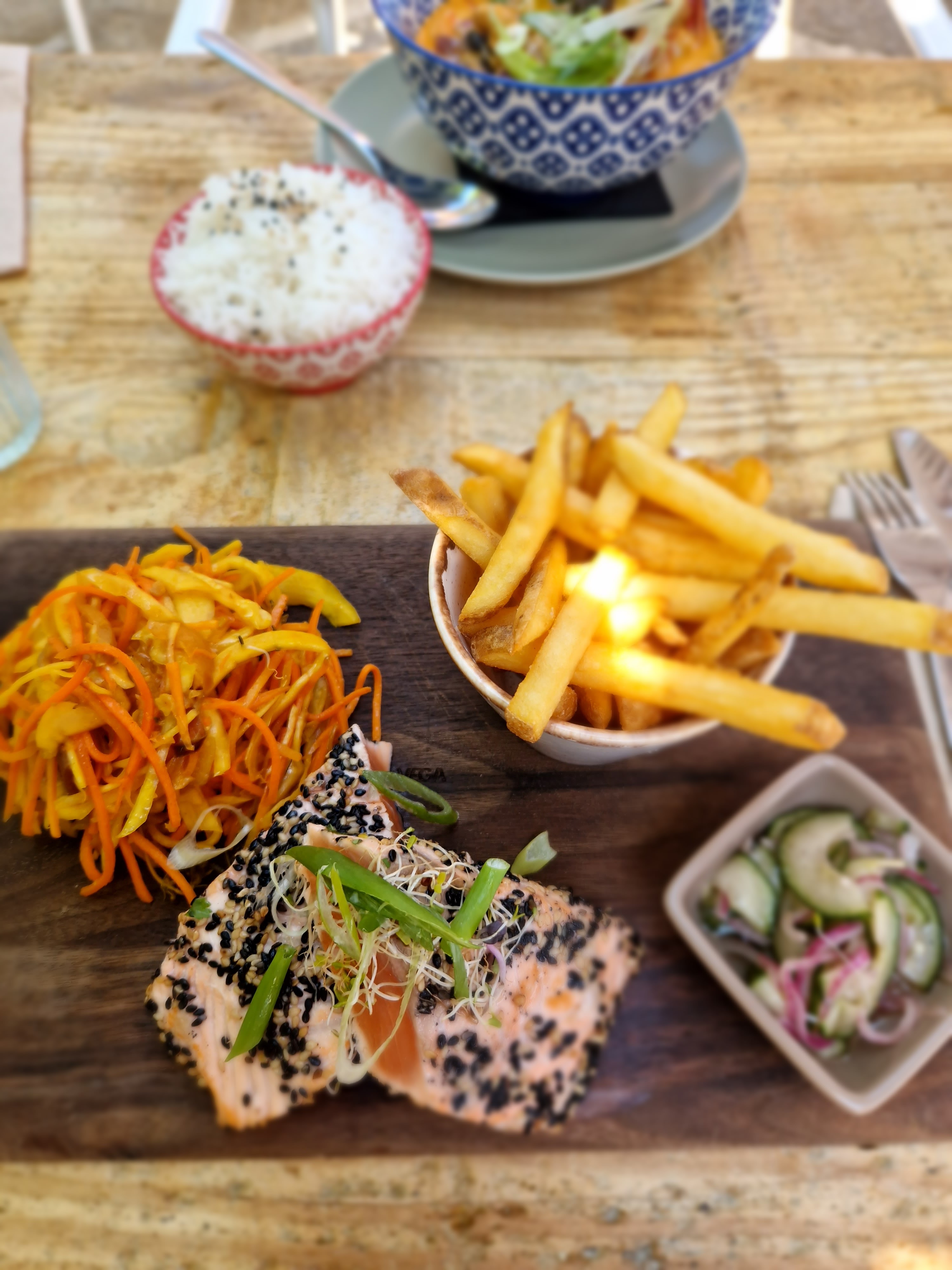 Nous nous y sommes rendus il y a quelques jours pour un déjeuner. La restauration est excellente (petits clin d’œil aux cuisiniers car mon plat était plus que réussi) : me concernant j’ai pris un poke bowl de saumon. Seul bemol, la serveuse nous a pris notre commande de boissons lors de notre arrivée et nous avons été servis lors du repas néanmoins cela n’est pas bien grave. Cadre très agréable. Je recommande ++
