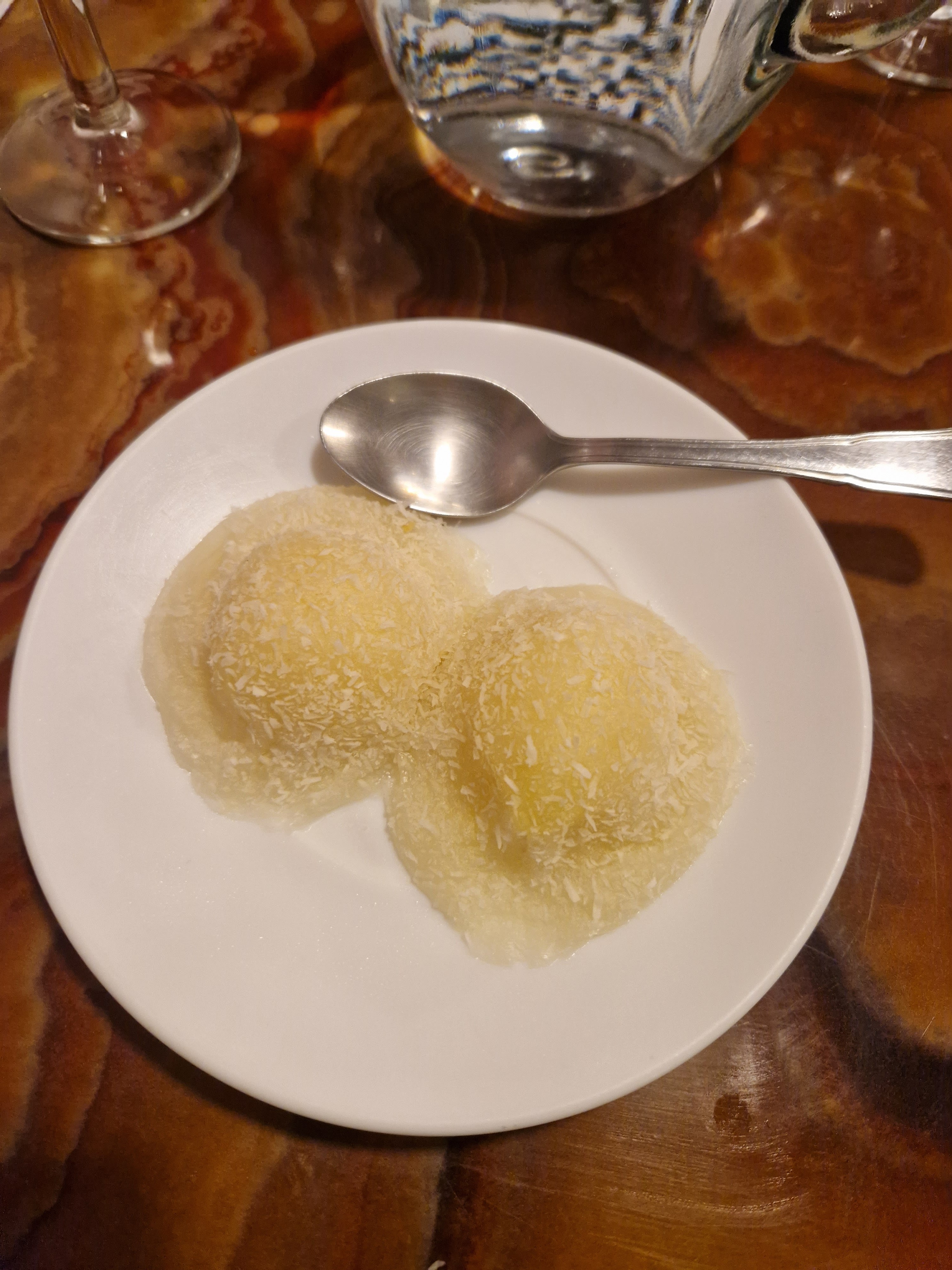 Très déçue, dommage...j'avais commandé 10 sashimis assortis on m'a servi directement mon plat sans me dire qu'il ne restait que du saumon et trop gras de surplus...avant de servir on prévient le client qu'il n'y a plus rien en cuisine !!!et les boules de coco du caoutchouc...on n'y reviendra pas