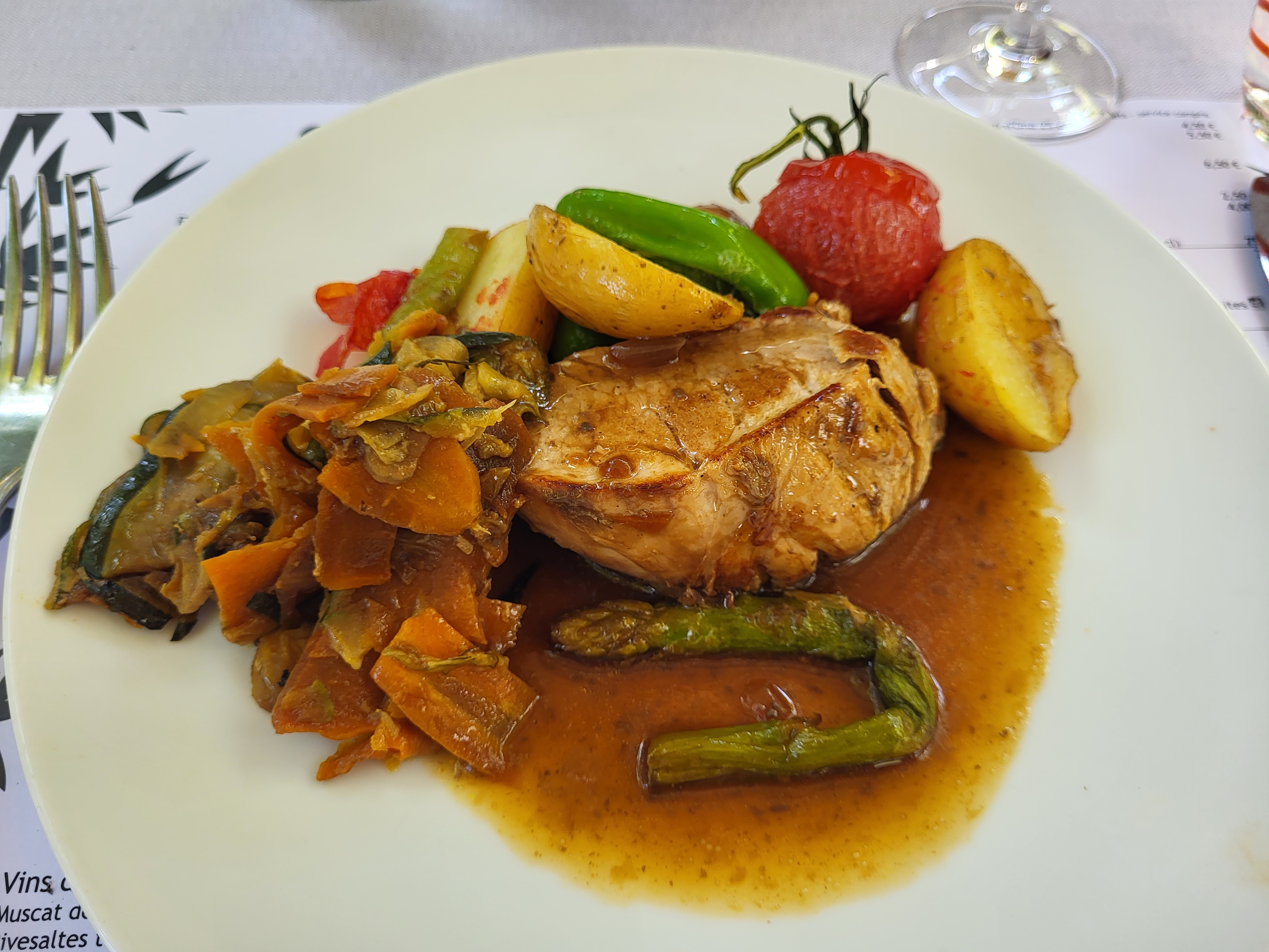 Un jour de marché à Ceret .Un simple menu du jour mais oh combien savoureux ,un parmentier de canard . En entrée un serrano con tomate et un tiramisu en dessert . Un adresse à retenir .