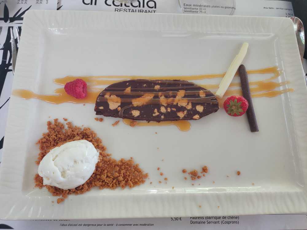 Céret, sans aucun doute une des capitales du Pays Catalan. Cependant, ses restaurants souffrent pour certains du fléau de la banalité. Pourtant ! Il y reste de bonnes adresses et AL CATALÀ en fait certainement partie! En temps normal, je pense qu'il vaut mieux réserver sa table. Mais une fois installé dans votre siège, vous pourrez découvrir les gourmandises locales; du véritable goût du terroir du Vallespir aux démonstrations de potentiel de Madame la Chef. Le menu est adapté aux produits de saison et change ainsi toute l'année, invitant les gourmets à faire le déplacement pour ne manquer aucune recette. La cave fait étalage des élixirs de la region dont la sapidité vous sera comtée par le Maître d'hôtel. Régalant les fines Bouches par LE bon accord. Sans prétentions, dans la philosophie catalane, venez en couple, entre amis ou en famille. La salle est décontractée et d'un certain chic. Et le jardin ! Parfaitement ce qu'il faut pour se reborer en faisant belle table au milieu de la fraîcheur des bambous. C'est une maison, qui j'espère, survivra à la Coronafolie. Il est possible désormais d'emporter son plat favori. Heureusement ! Mais le grand bonheur reste quand même à table pour faire l'éloge de ces travailleurs sincères et passionnés. J'y ai moi même goûté à des saveurs d'antan et ai été subjugué par l'originalité et la technique déployée pour certaines recettes qui rompent avec l'ennui. Je m'y suis senti bien entouré. Avec des gens heureux un verre à la main ou à la bouche pleine. Et un personnel de salle exemplaire et aux petits soins. À chaque fois que je passerais à Ceret, je mangerais à AL CATALÀ. Et je paierais en liquide !