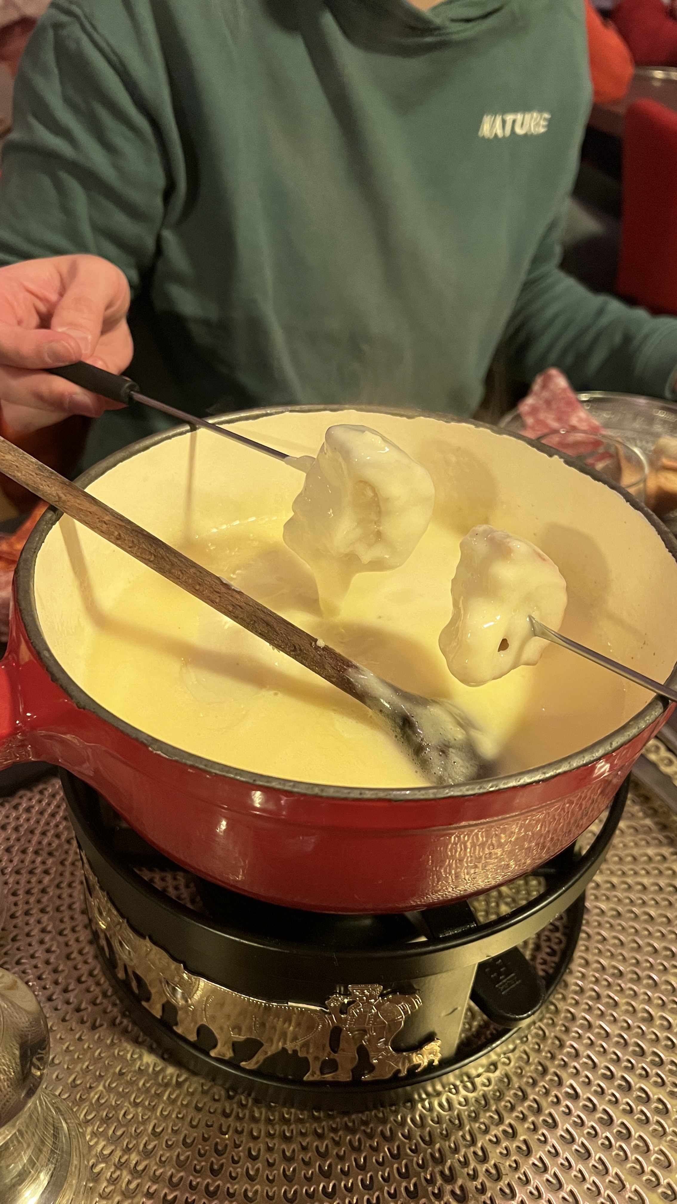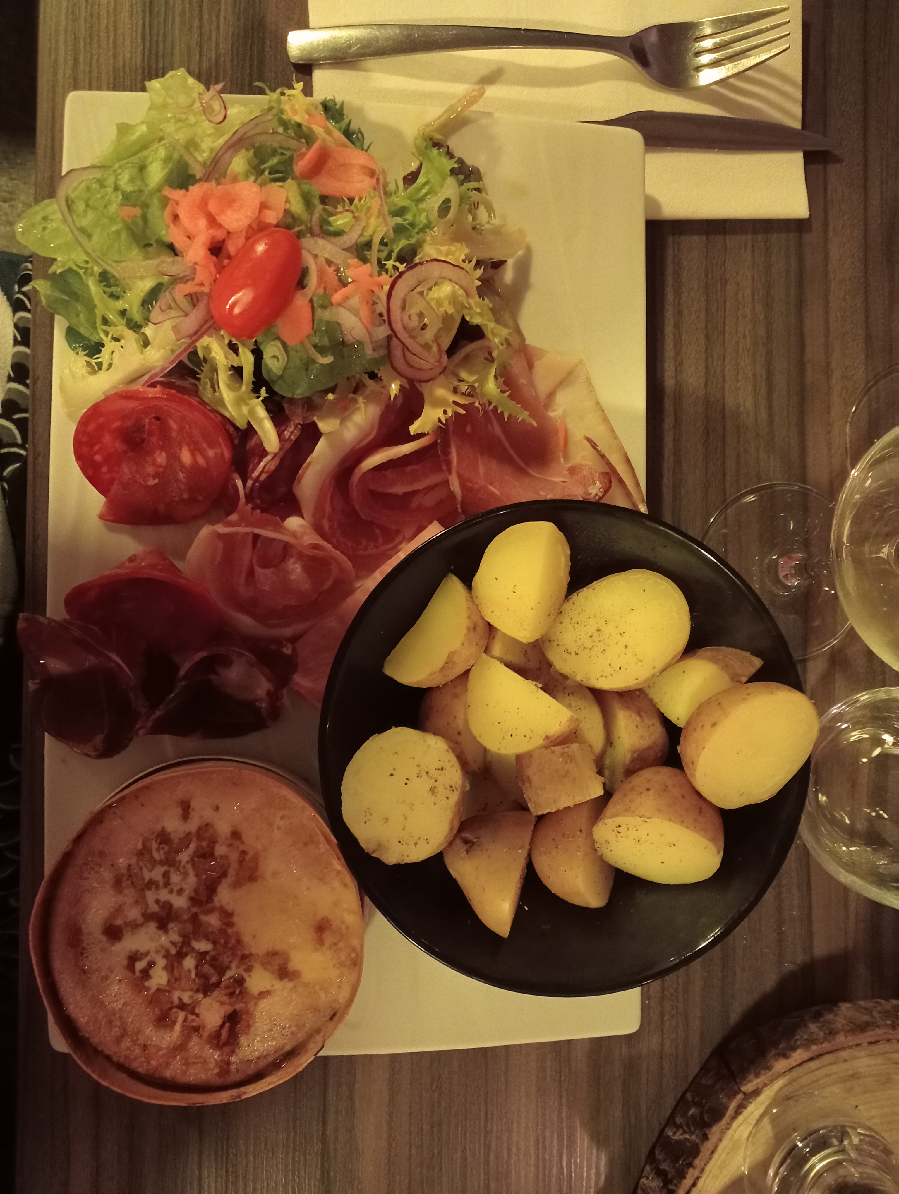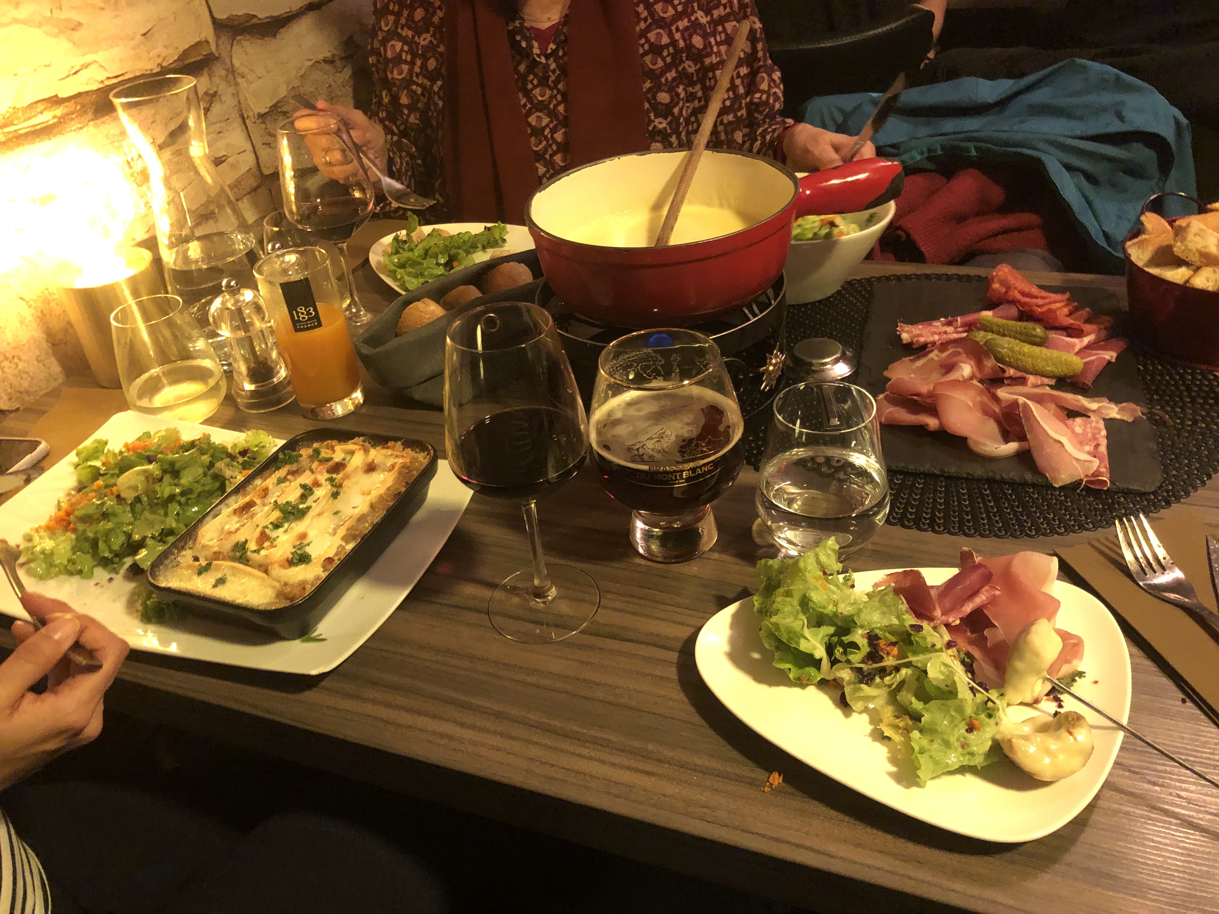 Fondue savoyarde savoureuse salade Au top plateau de charcuterie peu mieux faire Sinon accueil super