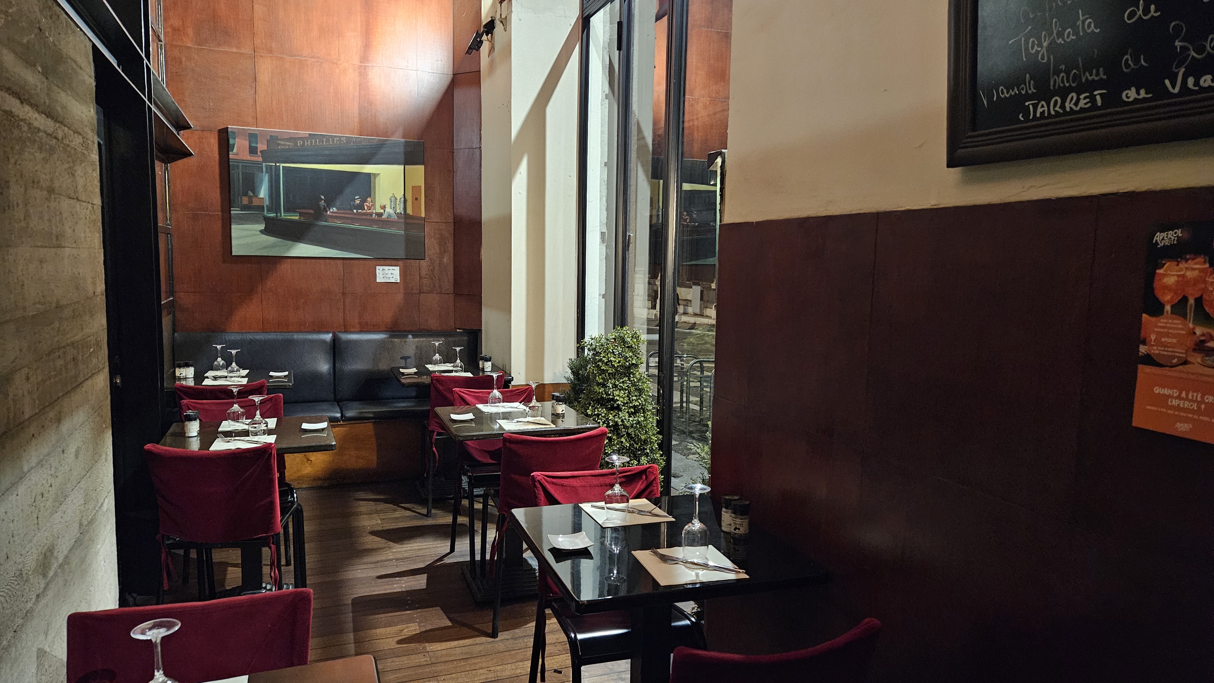 Situé dans une rue discrète ce restaurant cache bien son jeu et surprend une fois qu'on y entre. Très bien agencé, on y mange dans un cadre agréable et détendu. La décoration originale et les tableaux au murs rajoutent ce petit plus au cadre qui faut qu'on s'y sent bien. Service irréprochable on y est bien reçu et les repas sont excellents et les produits se bonne qualité. L'accueil et le service à la clientèle est un point fort de l'établissement. Je recommande fortement.