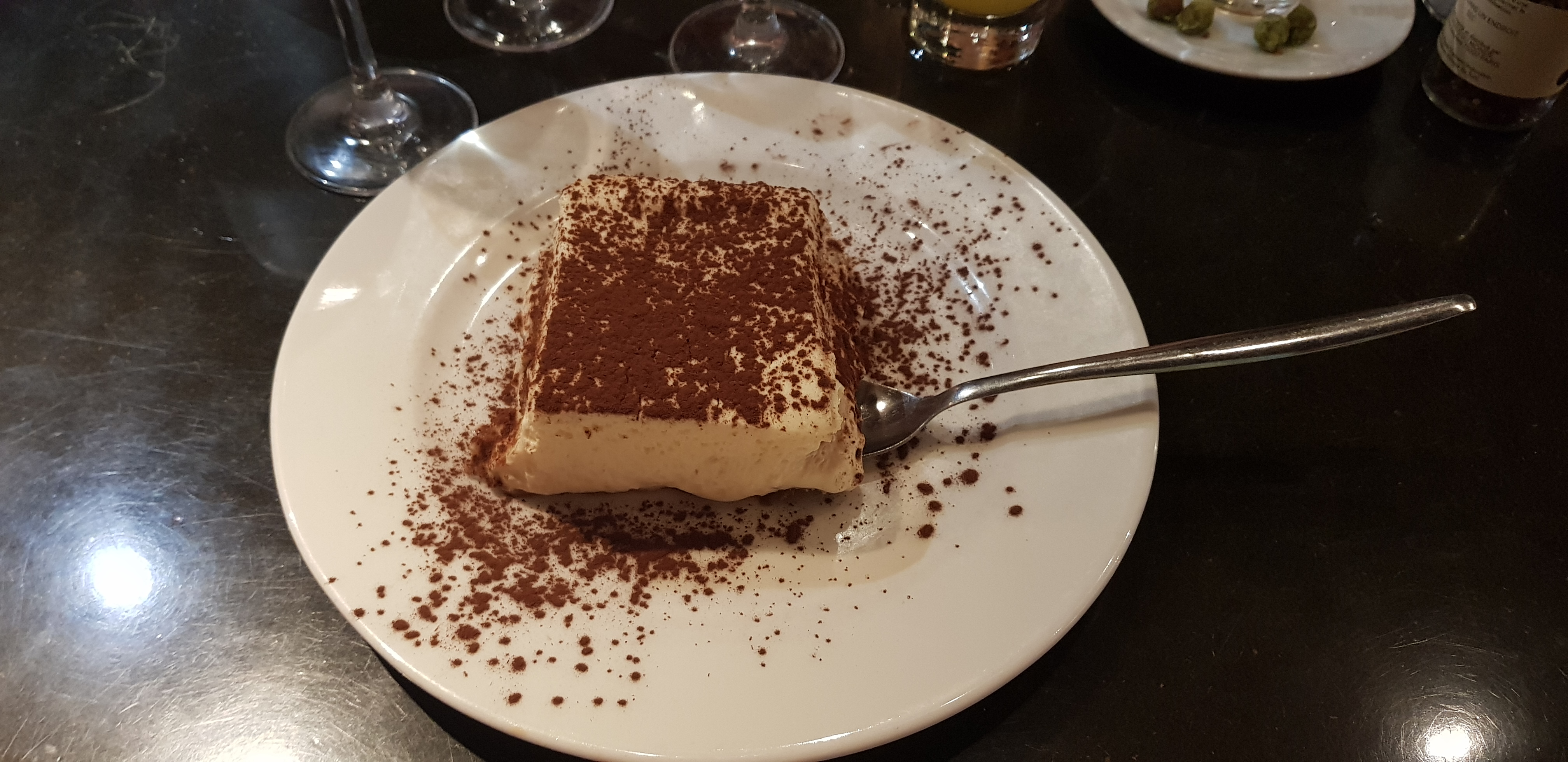Le plat était excellent, mais le tiramisu fade et trop de cacao