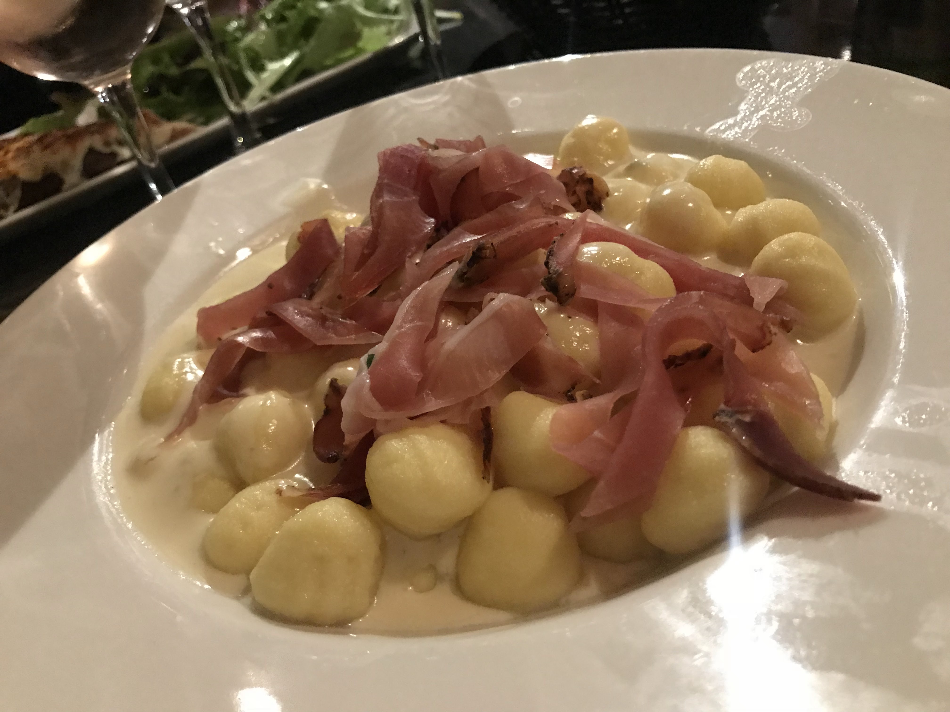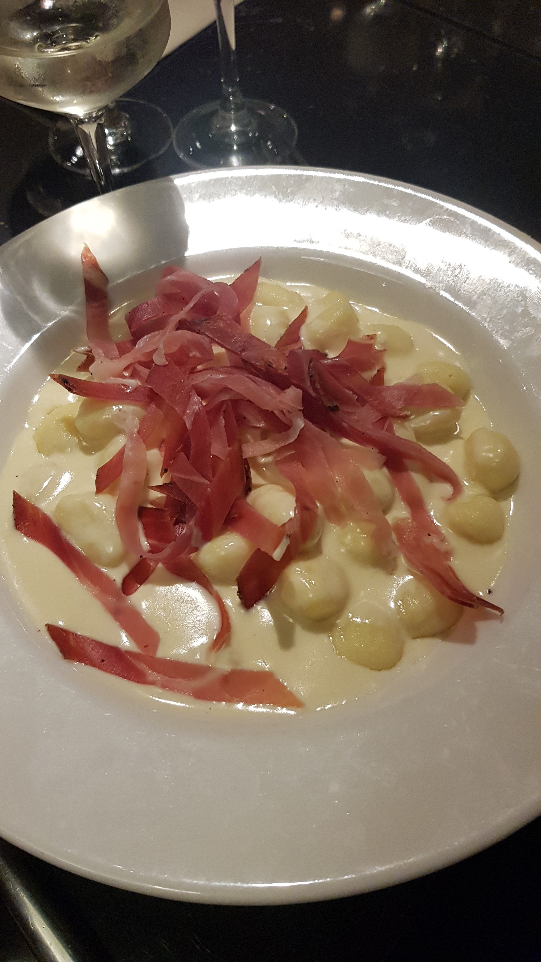 Délicieux repas, gnocchis faits maison sauce speck gorgonzola et pâtes sauce lapin 👍 nous reviendrons c'est sûr ☺️