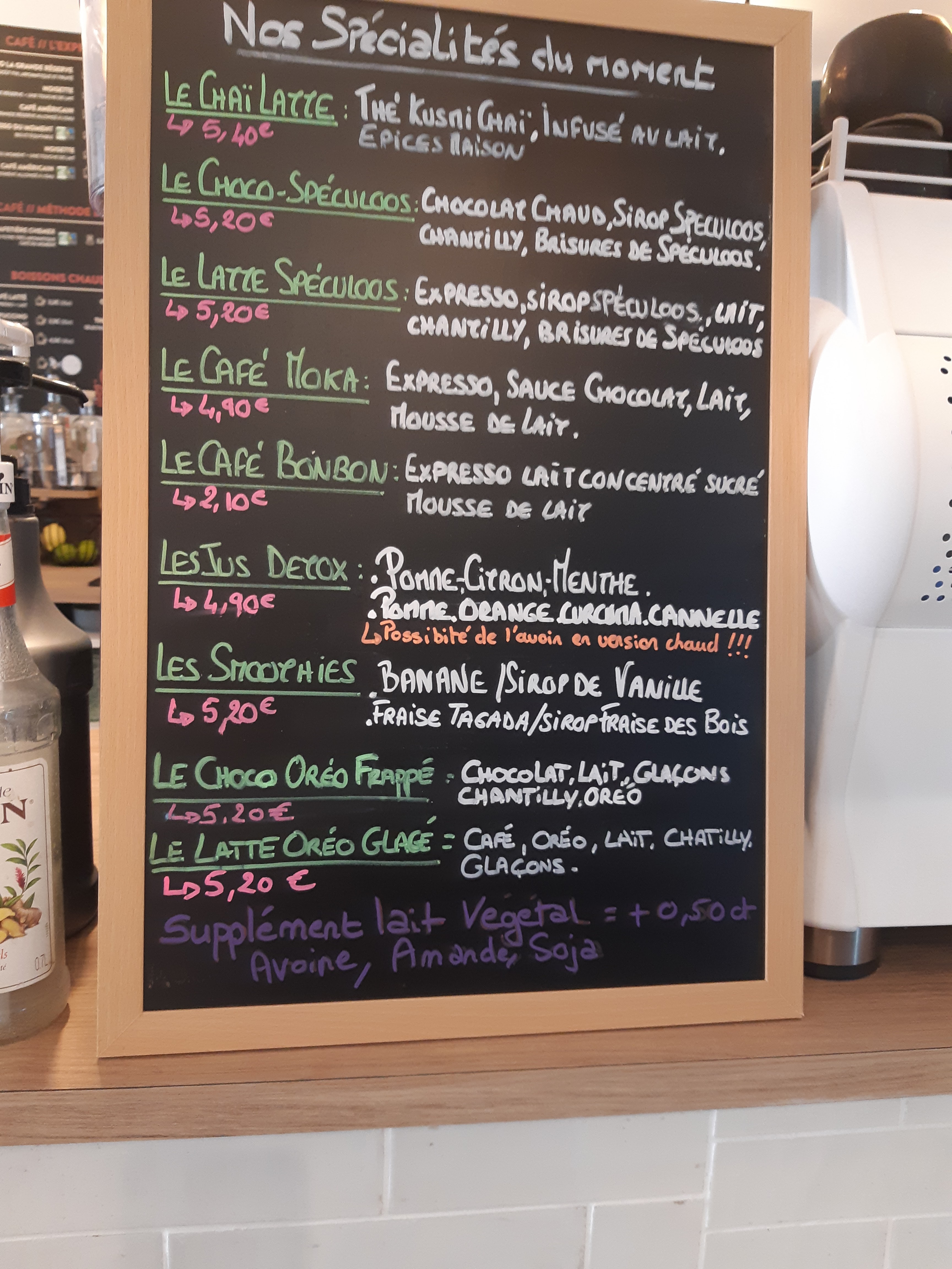 Super découverte et possibilité de prendre des boissons avec lait végétal, goût super et conception des boissons face aux clients !