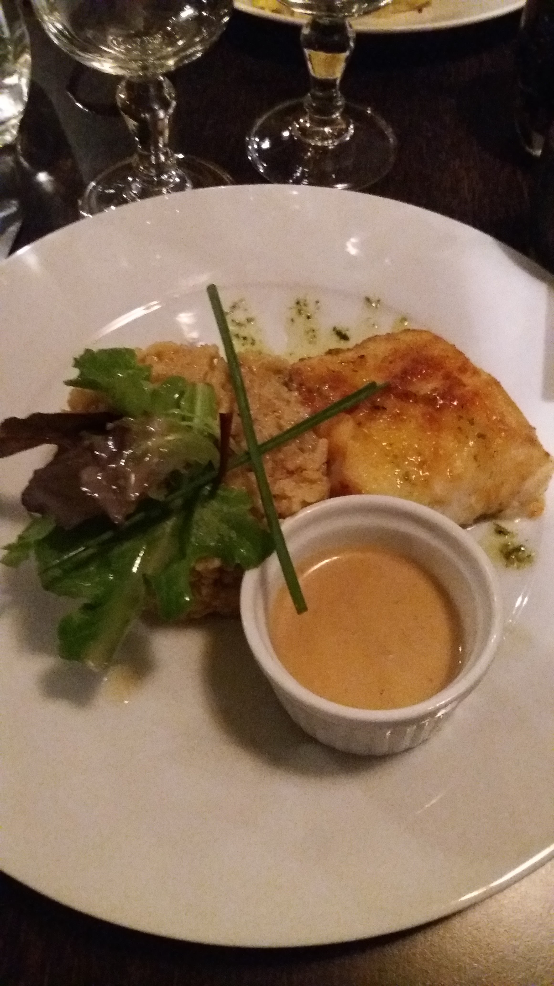 Très bon service accueil aussi les entrées un délice j'ai mangé du pulet, c était moyen mais les personnes qui m'accompagnaient ont apprécié la souris d agneau ; purée maison.