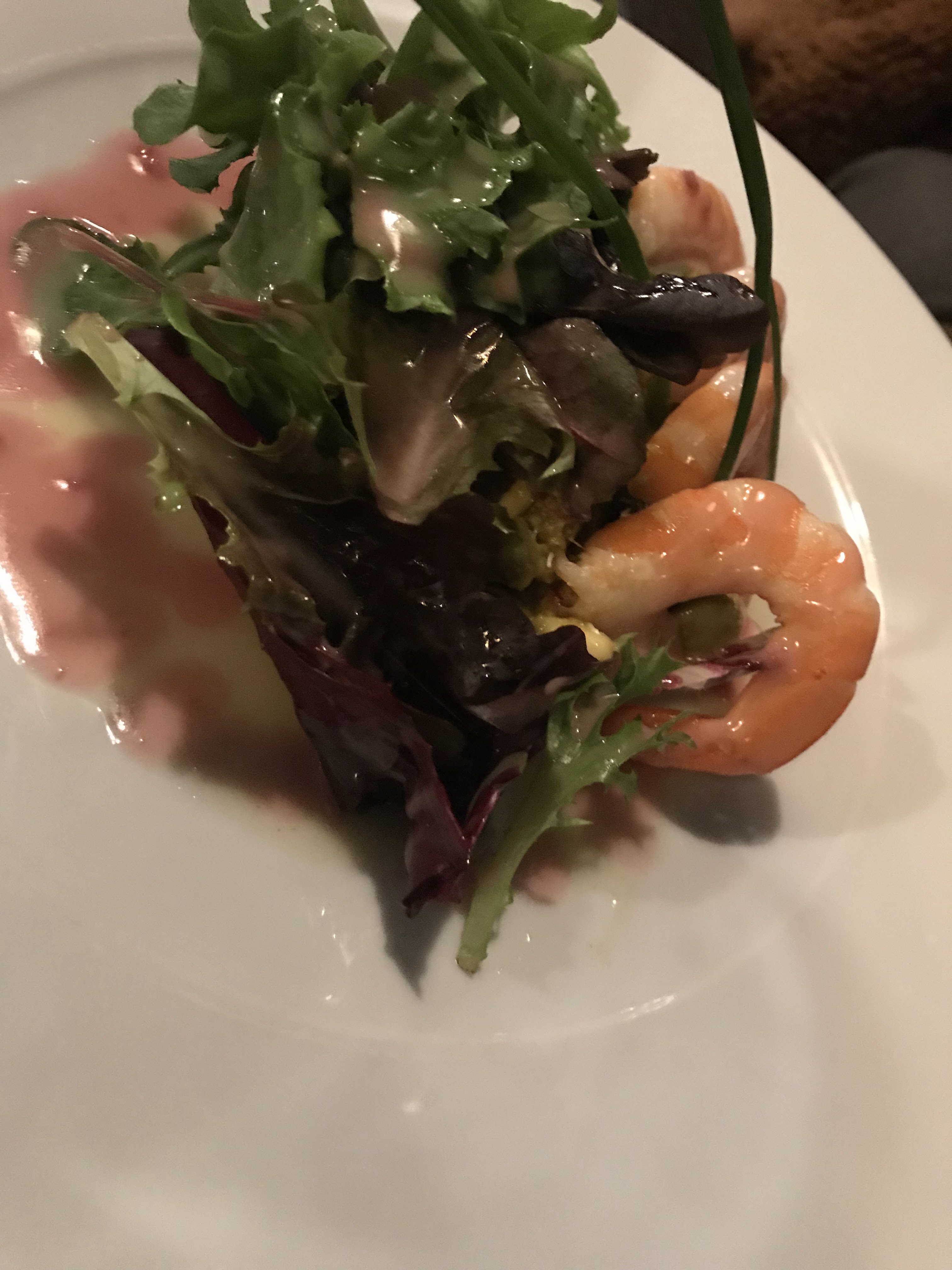 Je déconseille sincèrement. L’entrée avocat salade était une vraie blague, indigne d’un restaurant qui se dit « gastronomique ». Quatre pauvres crevettes décortiquées à moitié sur un avocat jeté au fond de l’assiette avec une feuille de salade. Le gigot ḍ’agneau était passable mais trop petit. Je ne dis pas que les plats étaient mauvais mais pour le standing prétendu du restaurant et pour le prix du menu (35€) c’est aberrant.