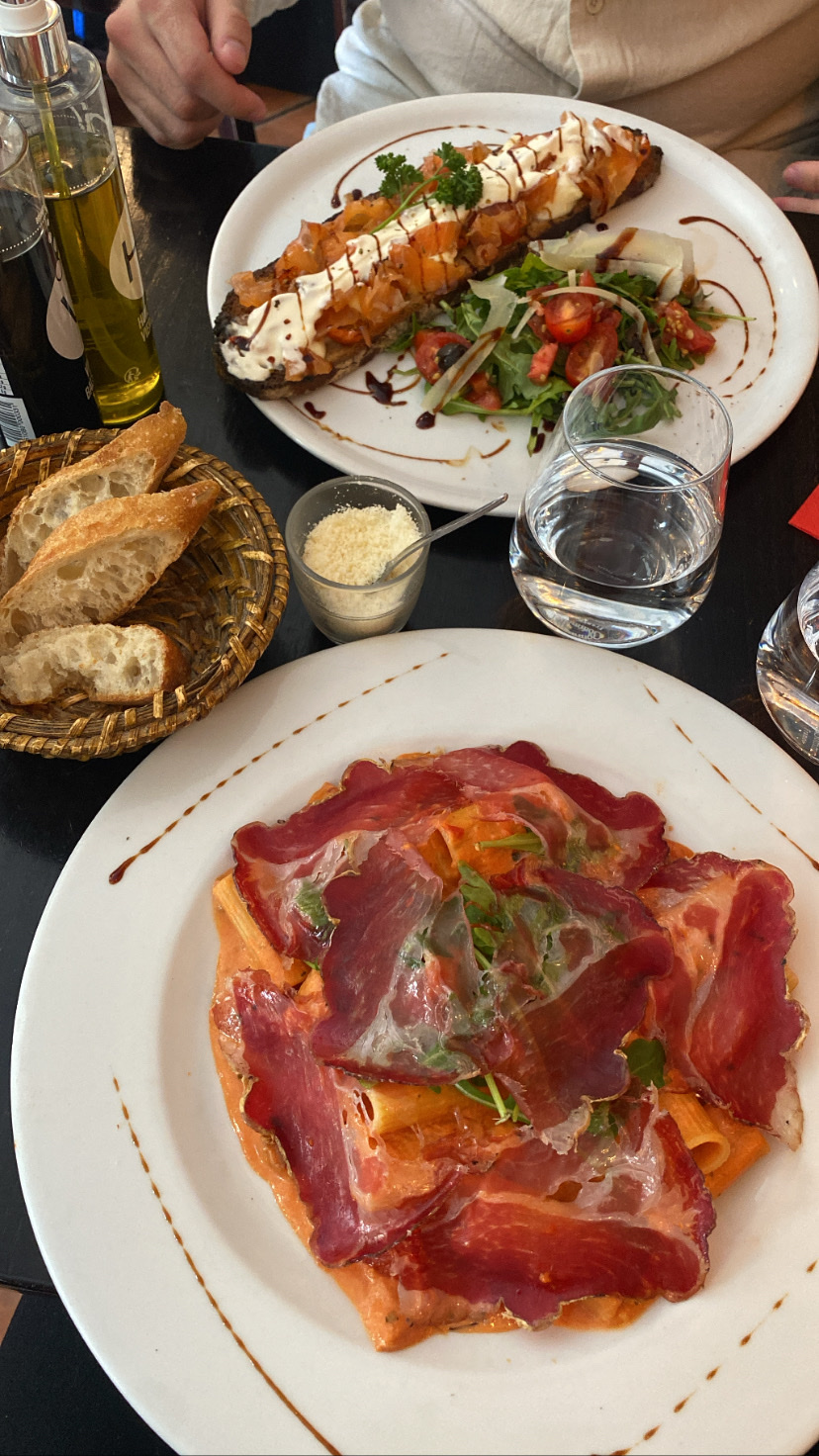 ATTENTION À ÉVITER ⚠️ Je vous assure que le service est désagréable. Une h d'attente pour des pâtes + le mec avec les cheveux semi long, qui vous sert comme une crotte( pas de signe de politesse breffff...). Juste si vous voulez passer une bonne soirée marcher dans le quartier vous trouverez un endroit où on vous sert avec plaisir et le sourire.
