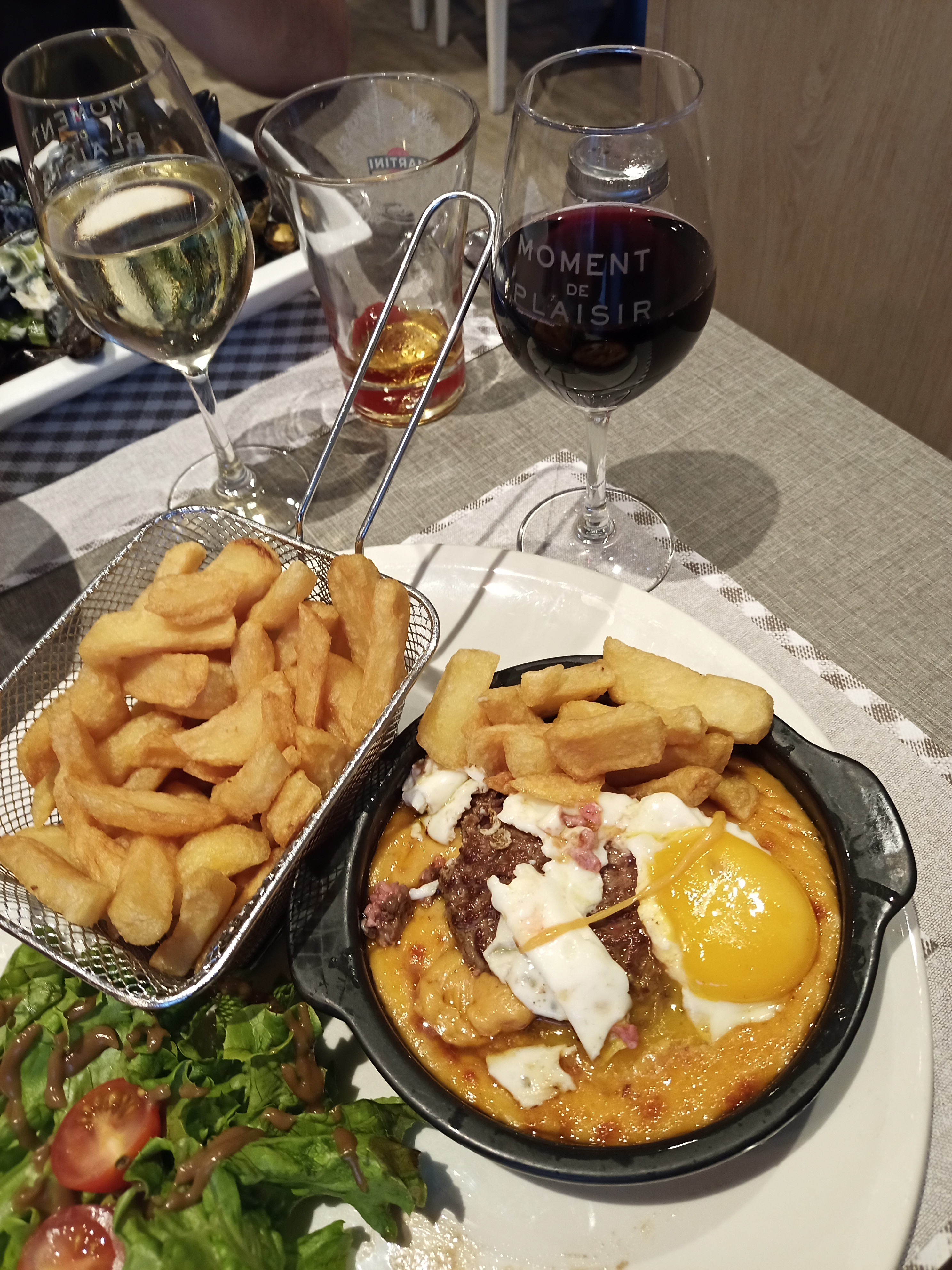 Super moment passé ! J’ai tenté pour la première fois de la vie de faire un restaurant seule et je suis ravie de l’avoir fait à ce restaurant. N’ayant plus de place ils ont même exceptionnellement rajouté une table de l’extérieur, n’ayant pour seul but d’accueillir les personnes ne souhaitant uniquement boire un verre. Un geste très sympa ! J’ai ensuite été servi par Greg, un homme charmant m’ayant permis de ne pas me sentir seule dans cette nouvelle expérience. Il m’a conseillée sur un vin que j’ai trouvé extrêmement bon !!