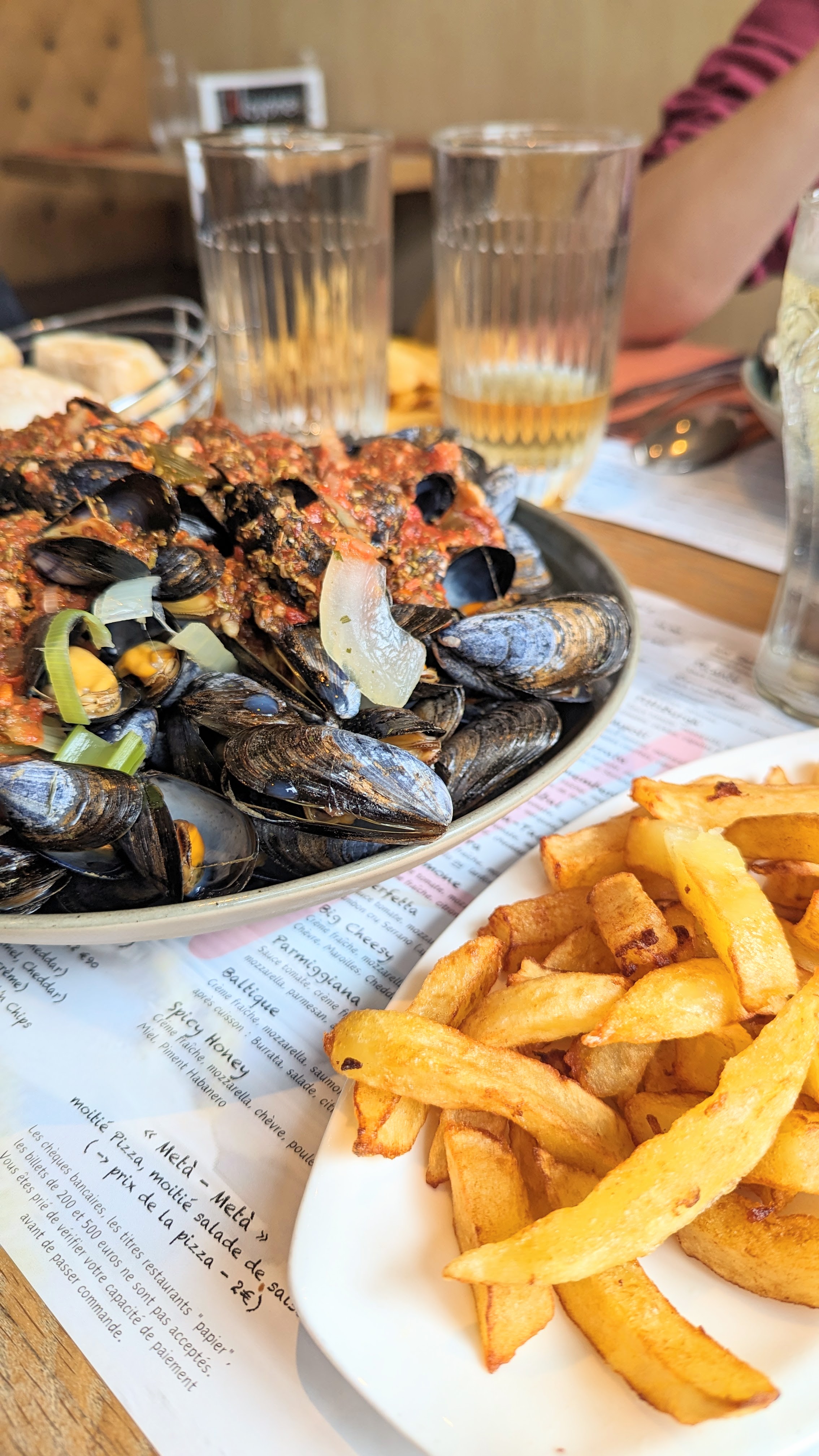 Les moules sont plutôt bonnes et bien servies a emporter. Par contre, nous avons été très déçus des pizzas. Petites et froides.