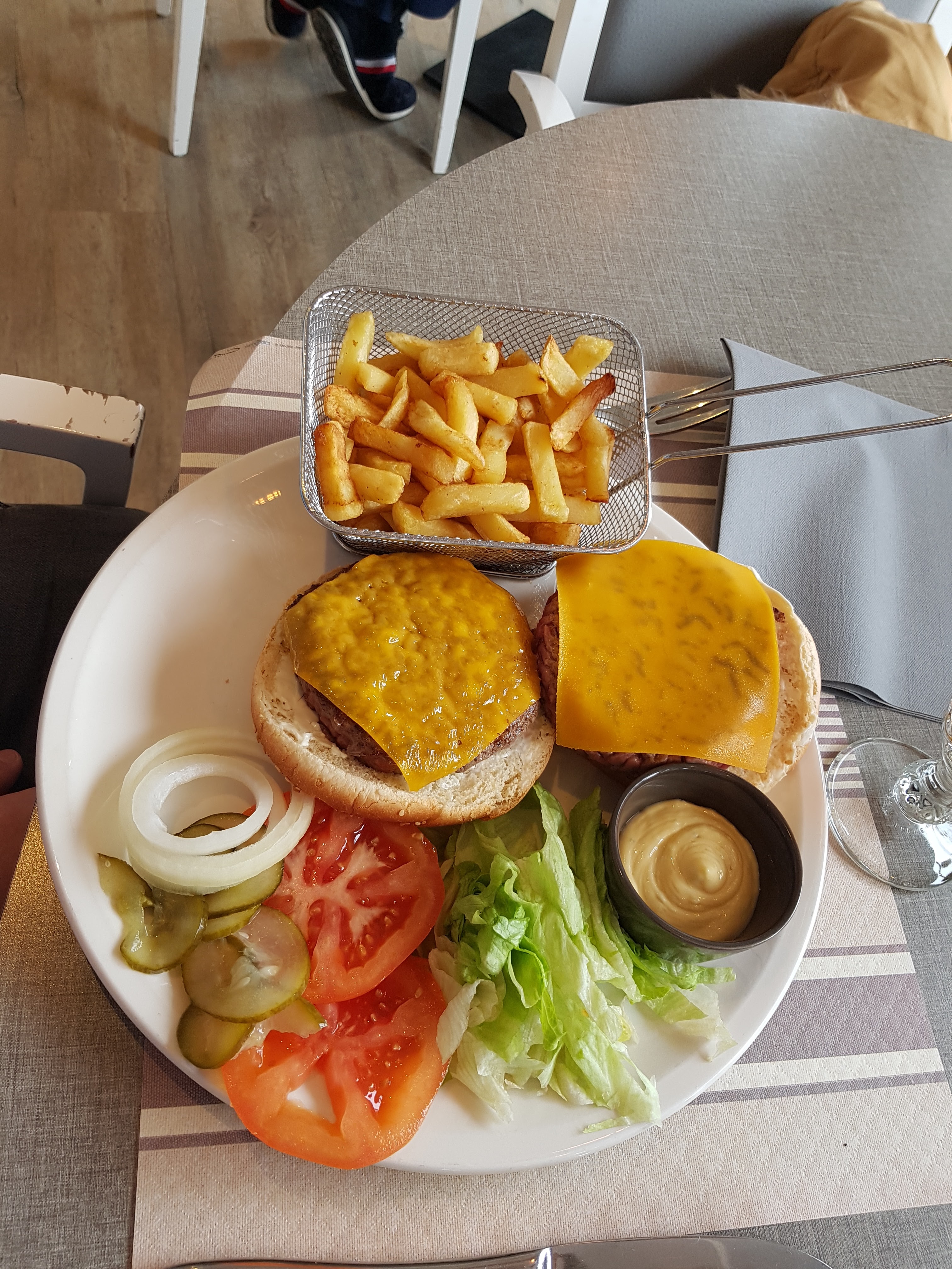 Accueil et prise en charge rapide malgré le monde. Du choix dans la carte. Je regrette juste la prise de commande en deux temps qui est une oerte de temps surtout quand le client a deja sélectionné son plat. Moules mariniere gouteuse et Poutine tex mex vraiment copieux. Table haute cote vitre tres chaude et parasol pas suffisamment grand pour obtenir de l ombre a table.