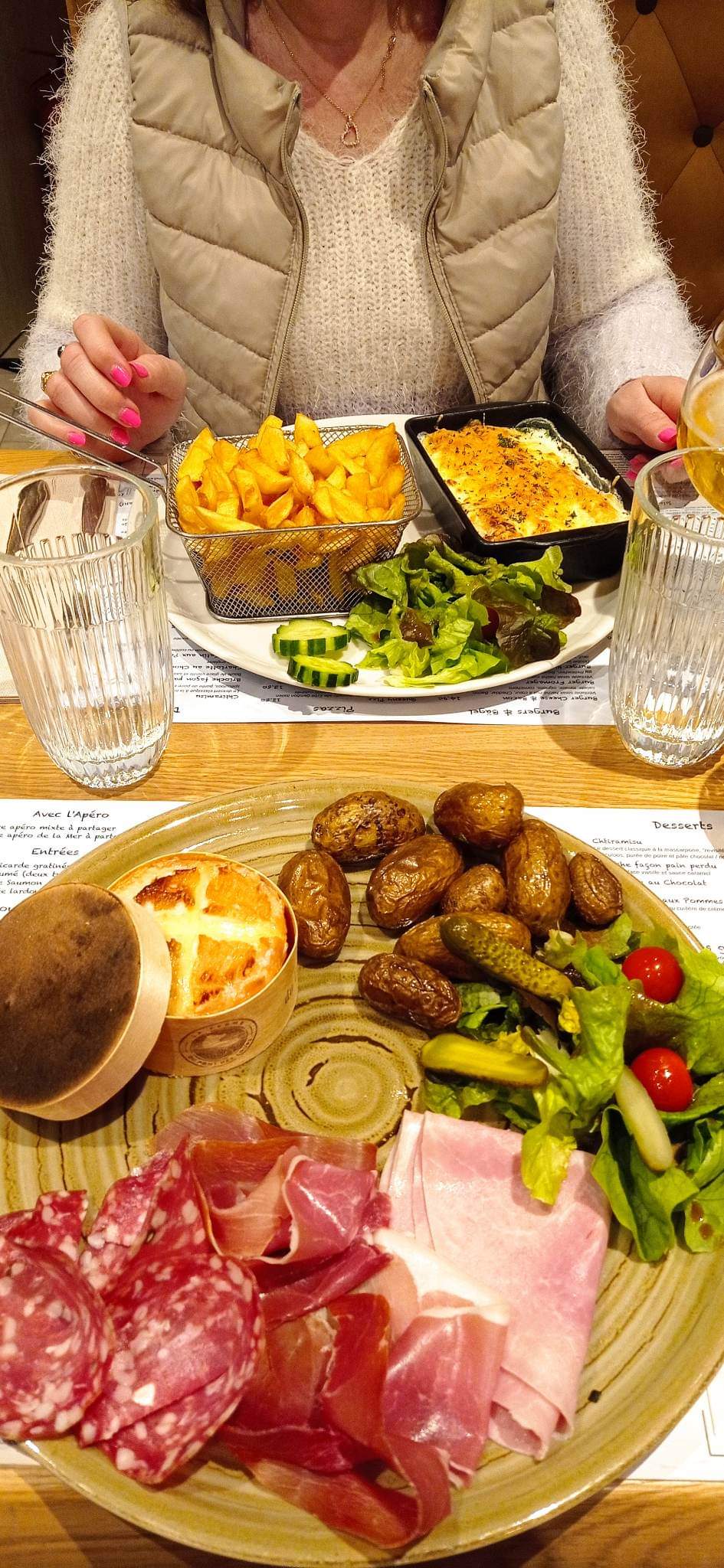 Très dessus de cette expérience dans ce restaurant en effet étant encore en étude je ne peux me permettre que quelques fois des restaurants ce qui m’a fortement dérangé lors de mon dîner. En effet nous avons eu un bon accueil mais lors de débuter notre commande nous demandons mon conjoint et moi même une assiette de charcuterie étant très difficile nous demandons à la serveuse de quoi est composé cette assiette, elle ne savait pas (ce qui n’est pas grave) mais nous avons du lui demander nous même si elle pouvait aller se renseigner. Quelques minutes plu tard elle revient nous décrit de quoi est composé cette assiette et demandons donc si nous pouvons enlever quelques produits que nous n’aimons pas elle nous explique que cela est impossible nous commandons donc une assiette de charcuterie facturé 13,90 pour 3 morceaux de rosettes 4 bouts de chorizos et de saucissons (mini) ce sont les seuls choses que nous avons mangé. Nous passons donc au plat je commande une salade César je demande également à enlever des ingrédients que je n’aime pas, mon conjoint demande un hamburger et puisque la serveuse ne demande pas la cuisson il précise qu’il souhaite le steak bien cuit, la serveuse lui répond que nous ne pouvons pas choisir la cuisson du steak (je n’ai jamais vu ça en restauration ayant nous même déjà travaillé en restauration) et elle finit par ajouter « vous êtes compliqué » ce qui je trouve est un peu inapproprié. Mon conjoint fini par commander une pizza jambon fromage avec avec un supplément frite, la pizza arrive sans jambon dessus juste du fromage une pâte à pizza très très fine enfin rien à manger sur la pizza quand à moi la salade était bonne mais très peu de salade. Très dessus d’avoir dépenser 65€ dans un restaurant pour avoir aussi peu manger sachant que ceci est exceptionnel au vu de mon statut (étudiante). Je précise que je ne grossi en aucun cas les choses.