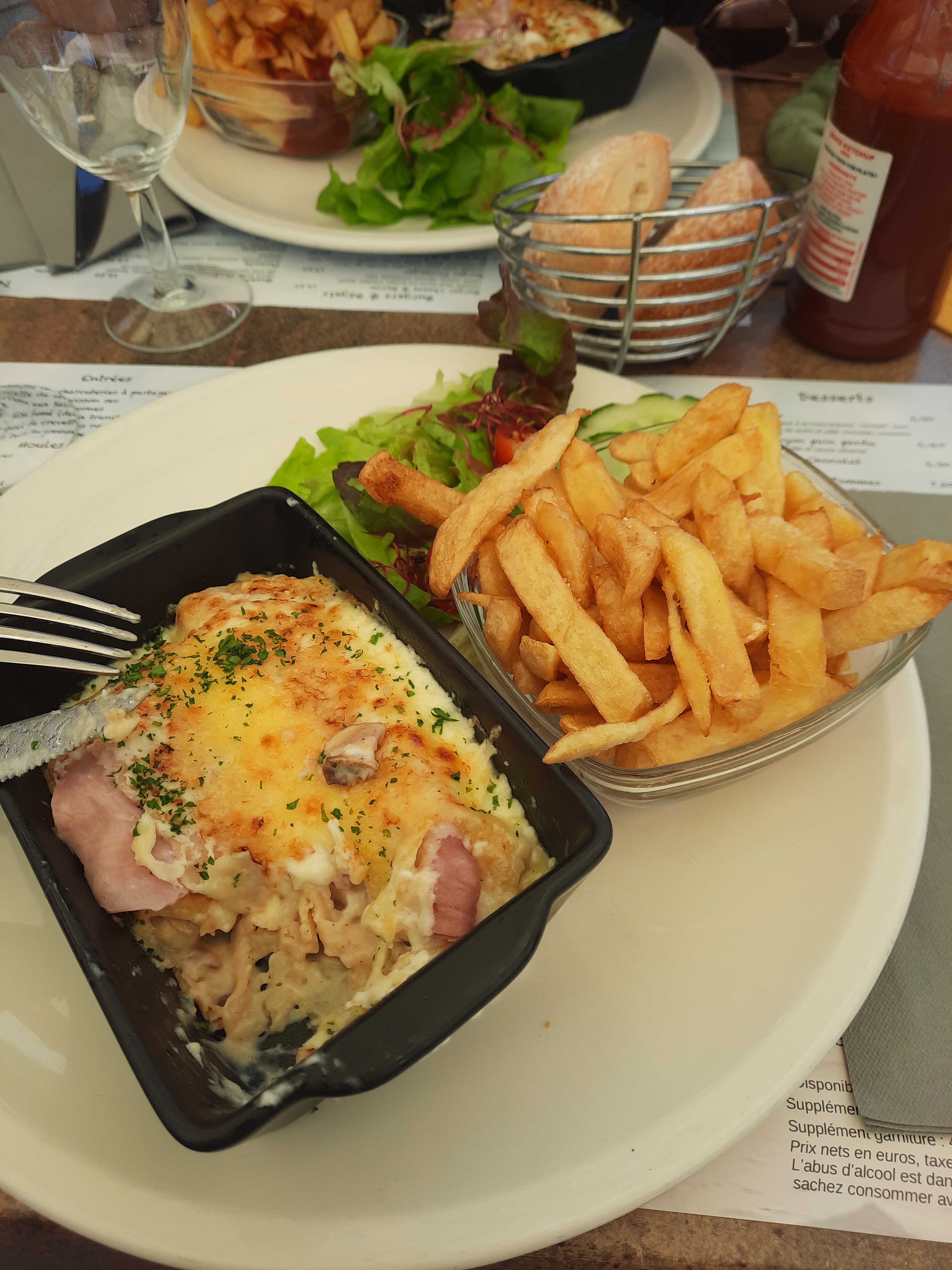 Je déconseille fortement les moules car servies pas cuites : très dangereux pour la santé risque d'intoxication alimentaire. Reprise à notre demande du plat pour plus de cuisson ( pas très bien apprécié par la direction bien évidemment) mais malheureusement une 2ème cuisson au micro-ondes car le maroilles n'avait pas bougė de place dans l'assiette. J'ai demandé s'ils mangeraient eux mêmes cette assiette de moules, ils m'ont répondu non. Pourquoi le servir au client ?