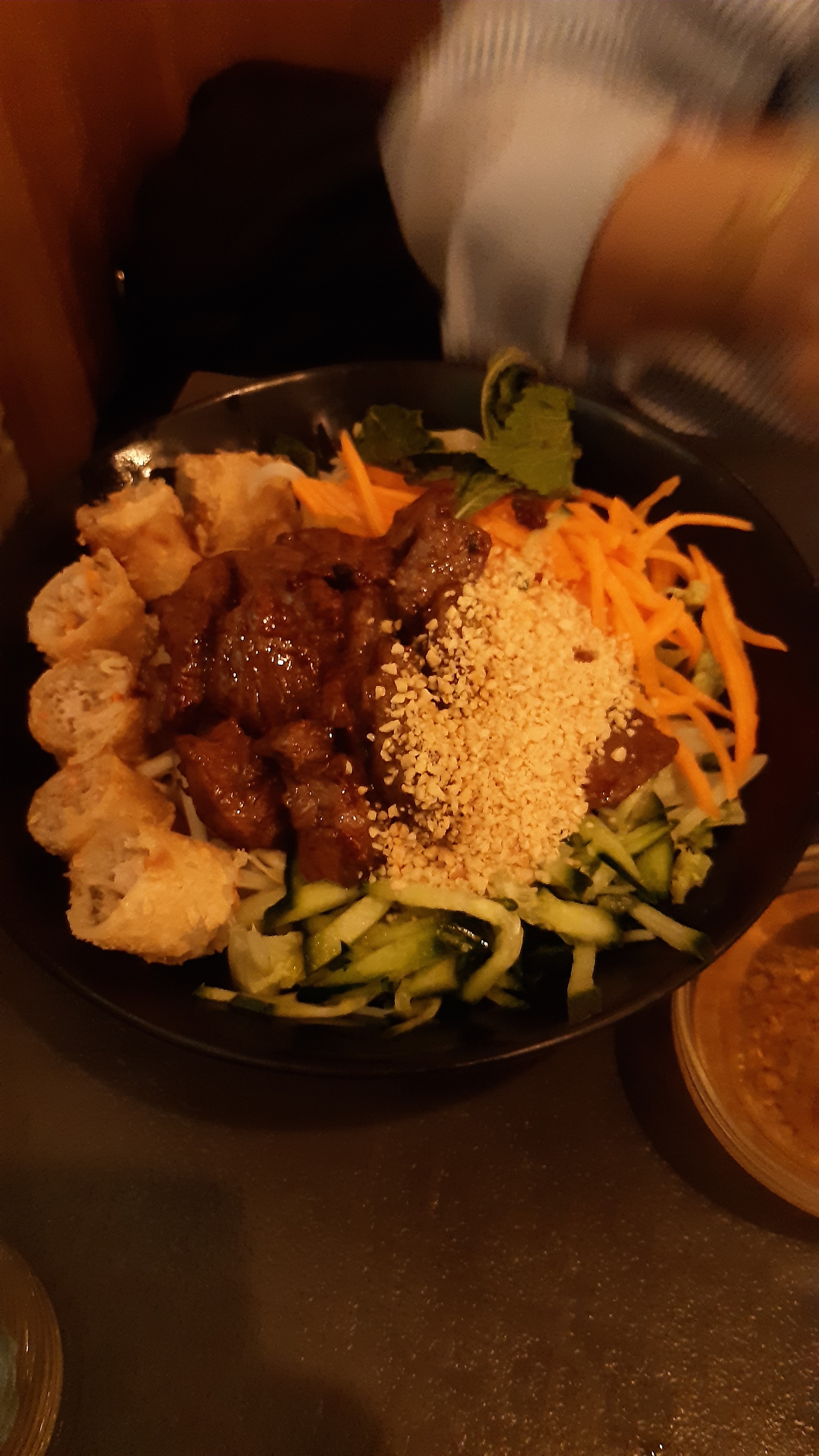 j’ai pris un Bobun au bœuf, et honnêtement c’est le meilleur que j’ai mangé sans deconné. Les serveuses sont super gentilles et à l’écoute le service était rapide. parfait rien à dire. 👍👍