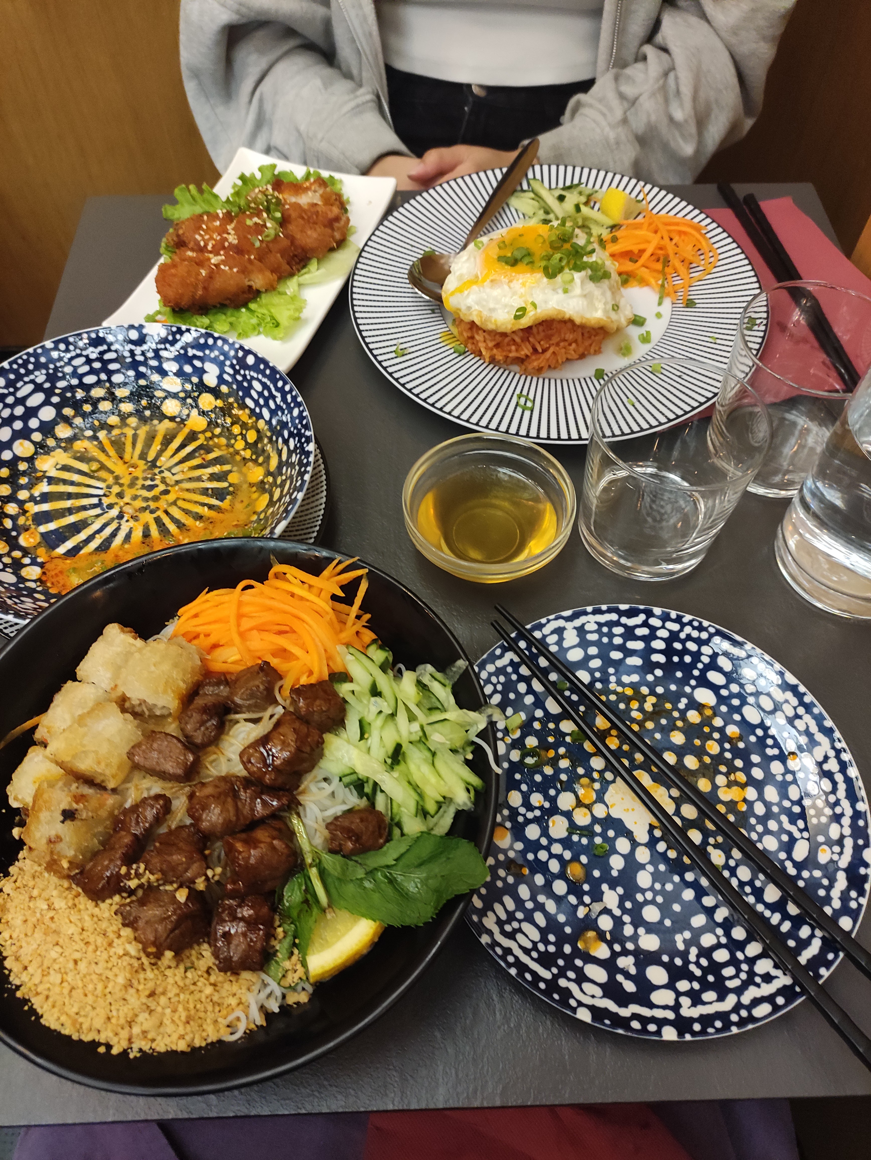Les plats étaient délicieux, mon amie a pris le riz du chez et moi le bo bun revisité, un régal. On a été servi rapidement, le personnel est adorable. Très bon rapport qualité prix. Je recommande a 100% !! (Nous avions déjà dévoré les raviolis sur la photo, la sauce était délicieuse)