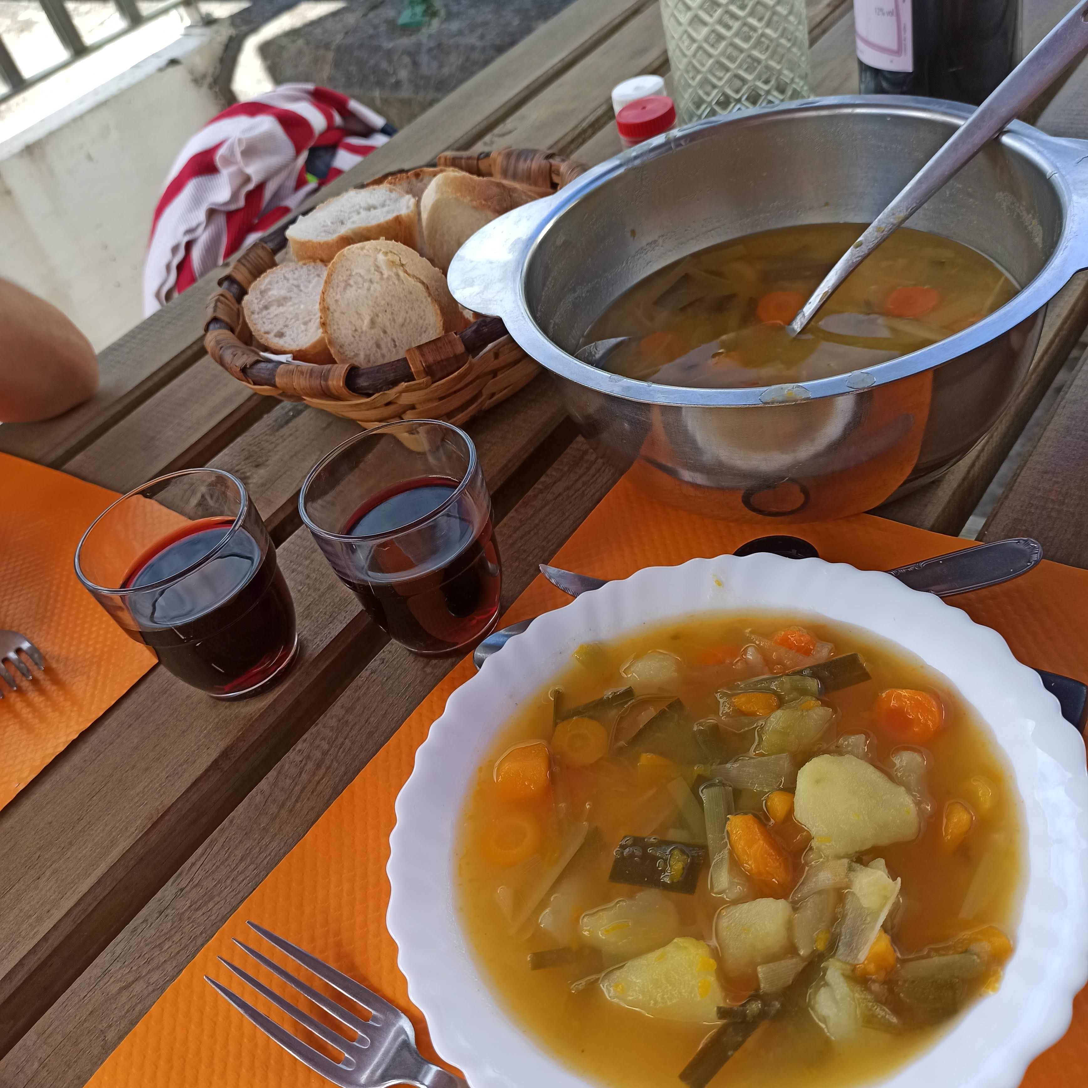 Il n’y avait pas de carte, juste ce qu’il y avait. Bonne nourriture très authentique et traditionnellement simple. Nous n'étions que deux ce soir-là. Nous nous sommes inscrits à l'heure du déjeuner et ils ont cuisiné rien que pour nous. À tout moment.