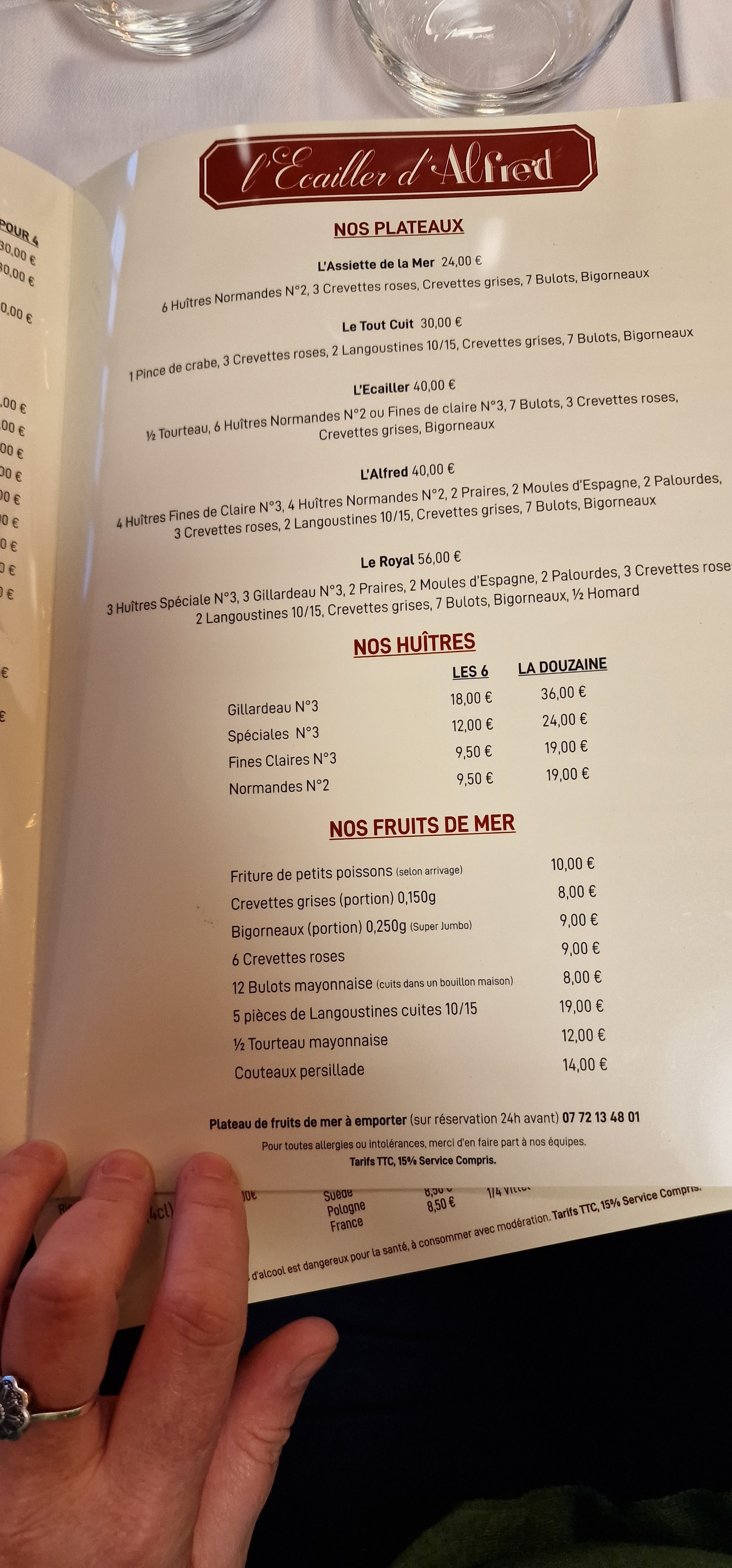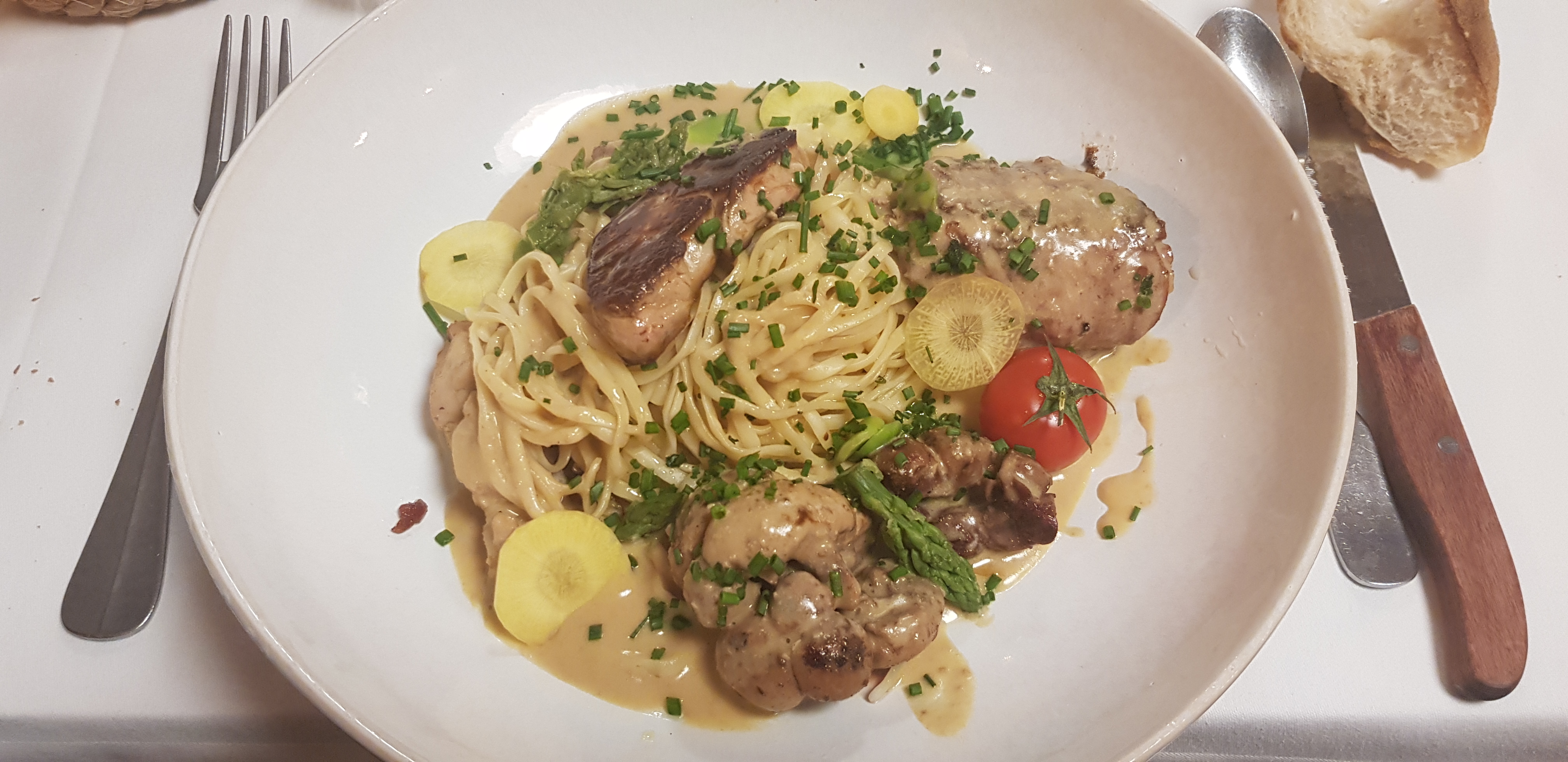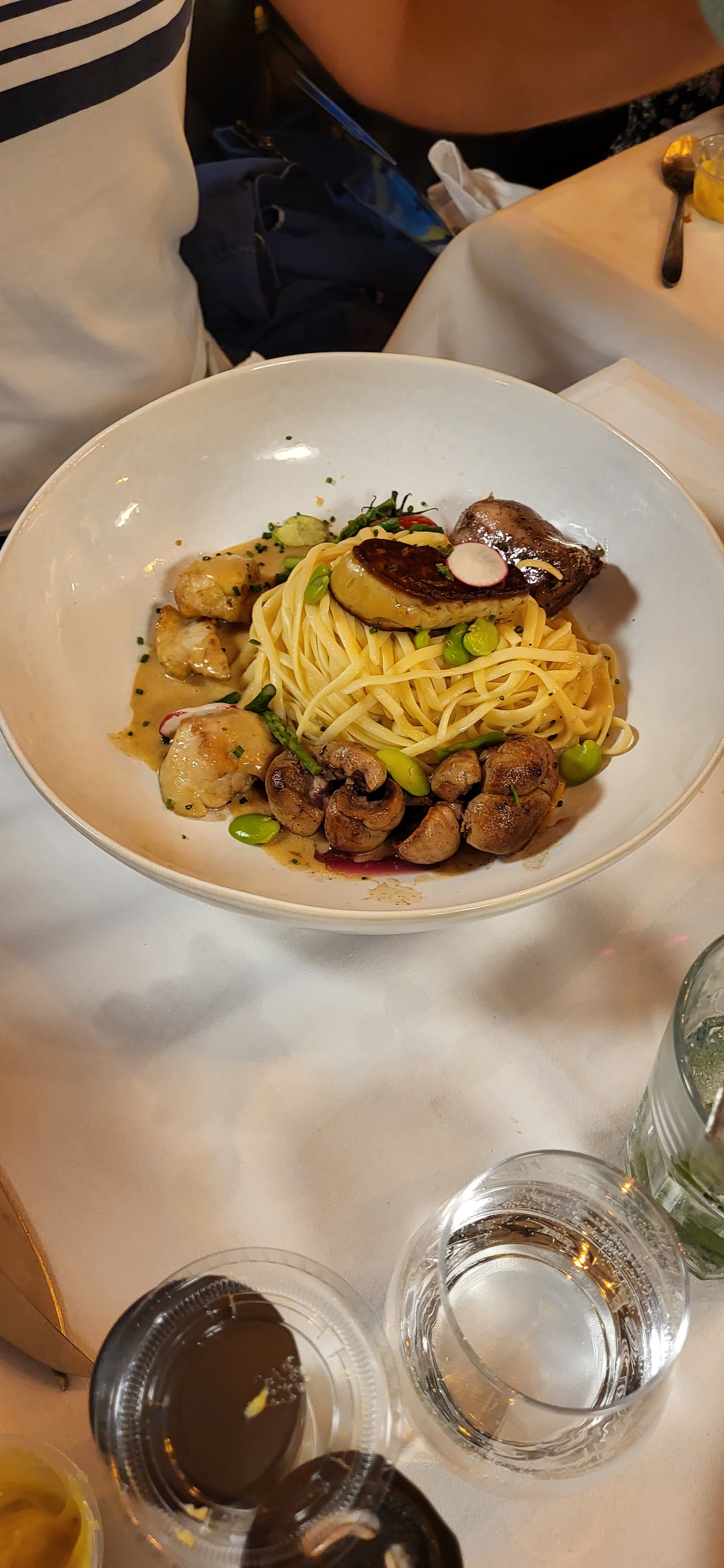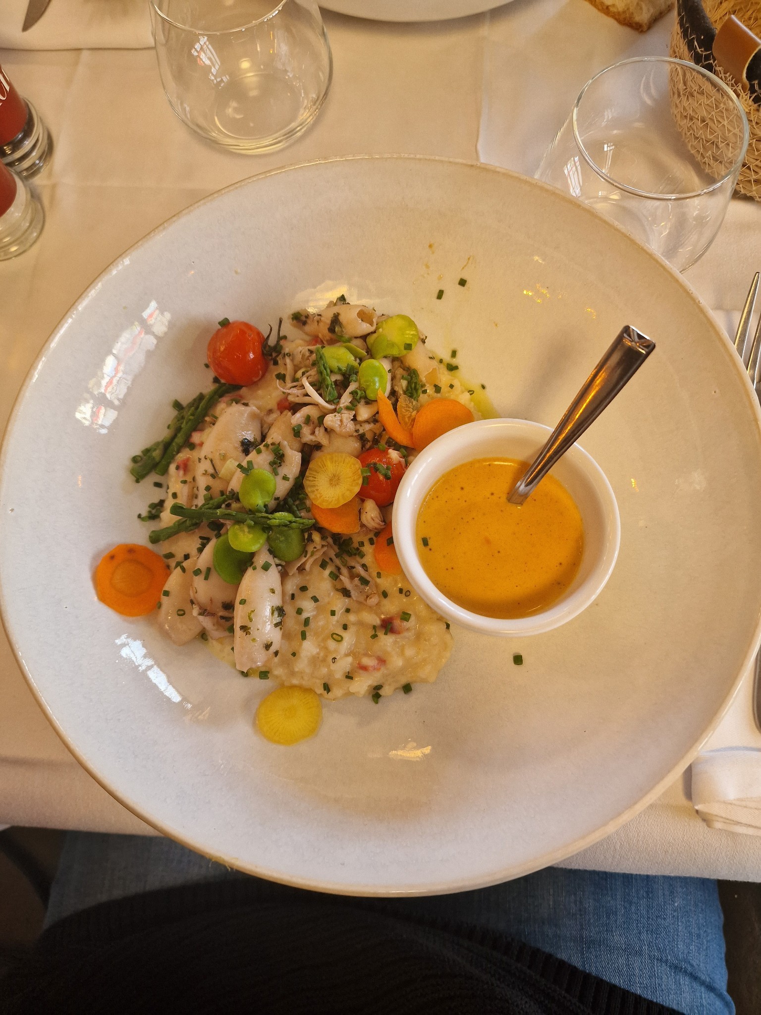 Je vous le conseille !! , riz de veaux sauce foie gras avec des saint Jacques une tuerie, et gambas St Jacques au citron succulent. Personnel aux petits soins avec toujours un petit mot gentil tout au long du repas.