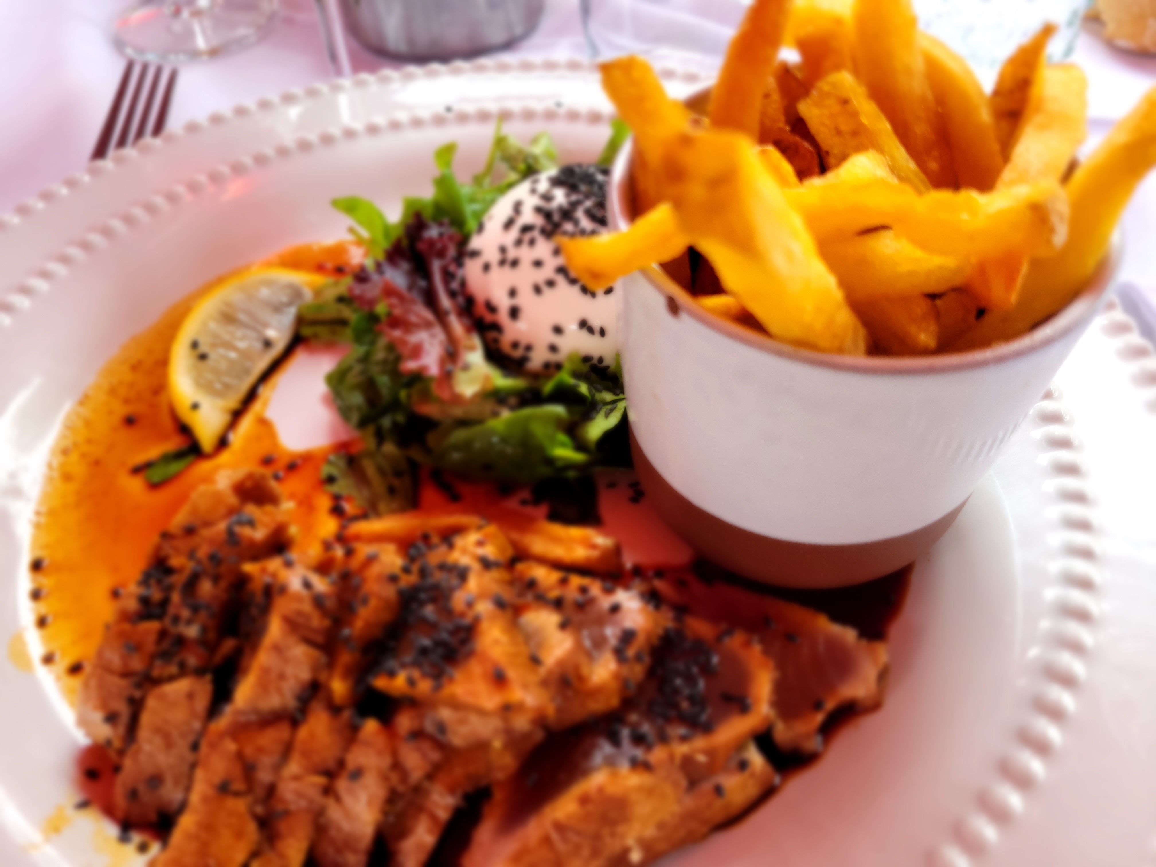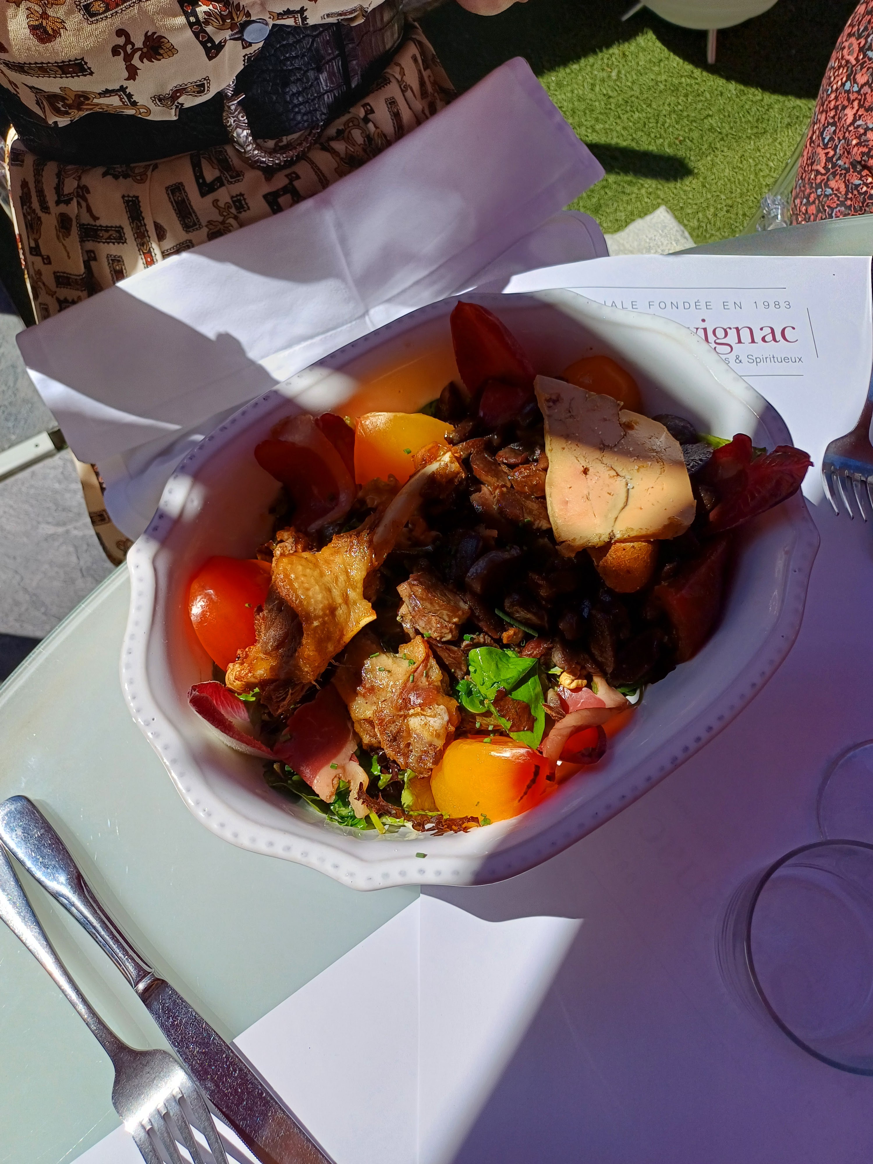 Excellent foie gras et délicieuse salade, vue très agréable, serveurs investis, ambiance vacances très agréable en ce mois d'avril, seul bémol service un peu long, Merci ä vous nous avons passé un beau moment entre amis