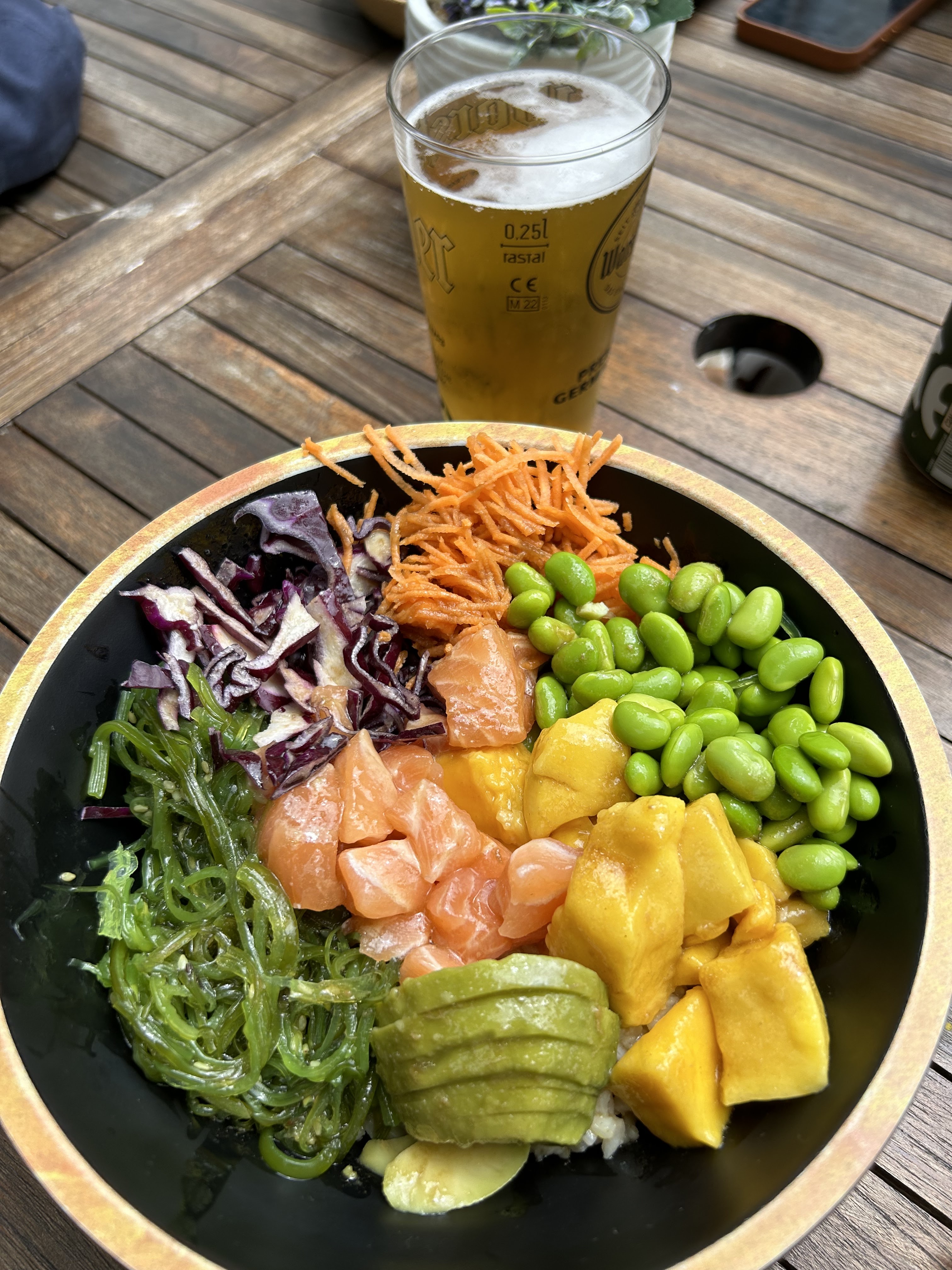 Délicieux poke bowl fraîchement préparé… à emporter pour manger au bord de la rivière. Parfait 👍