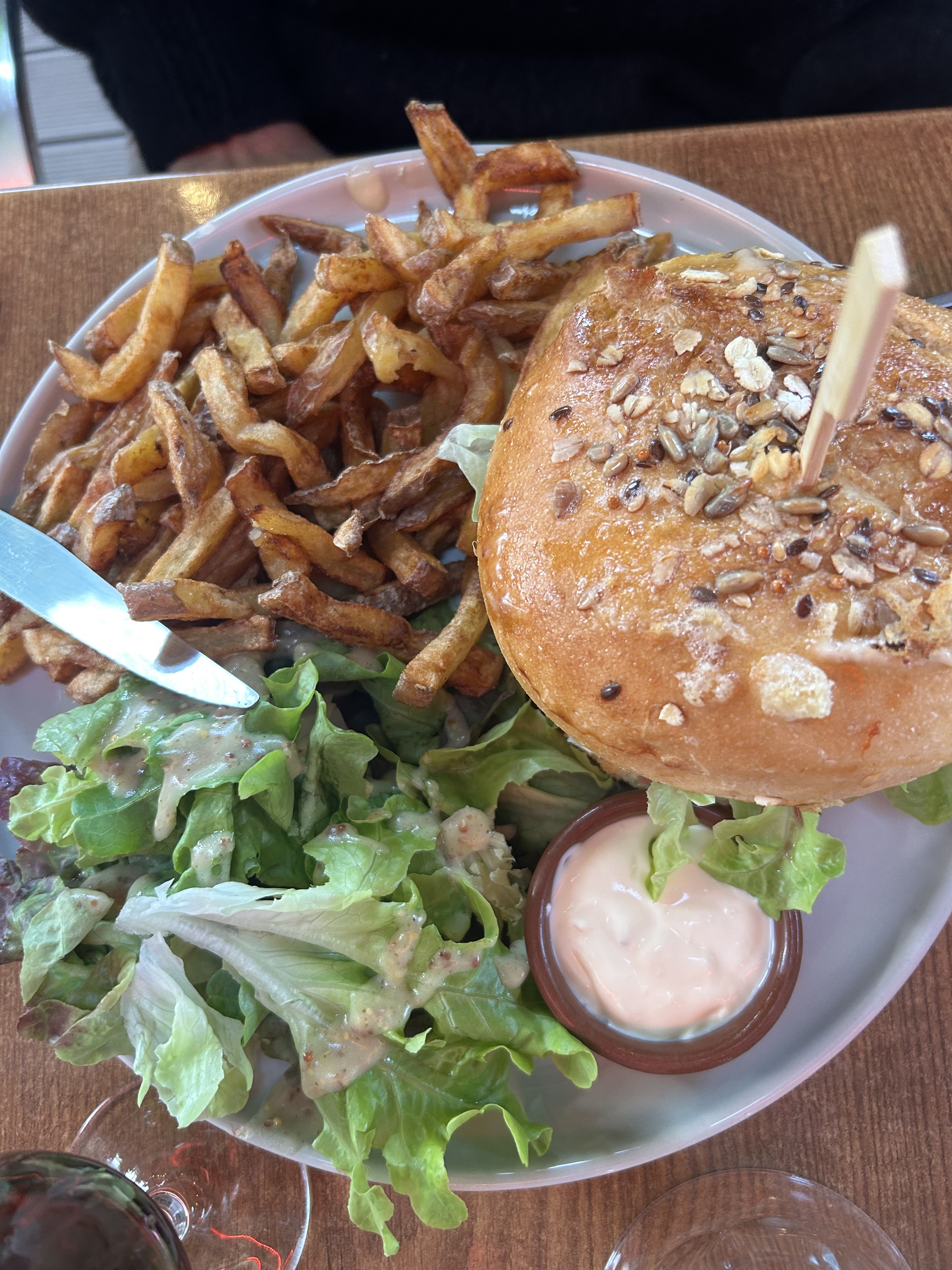 Bien mangé, le Burger 👍👍 pareil pour les desserts. Jolie ambiance et service au top. Pensez à réserver