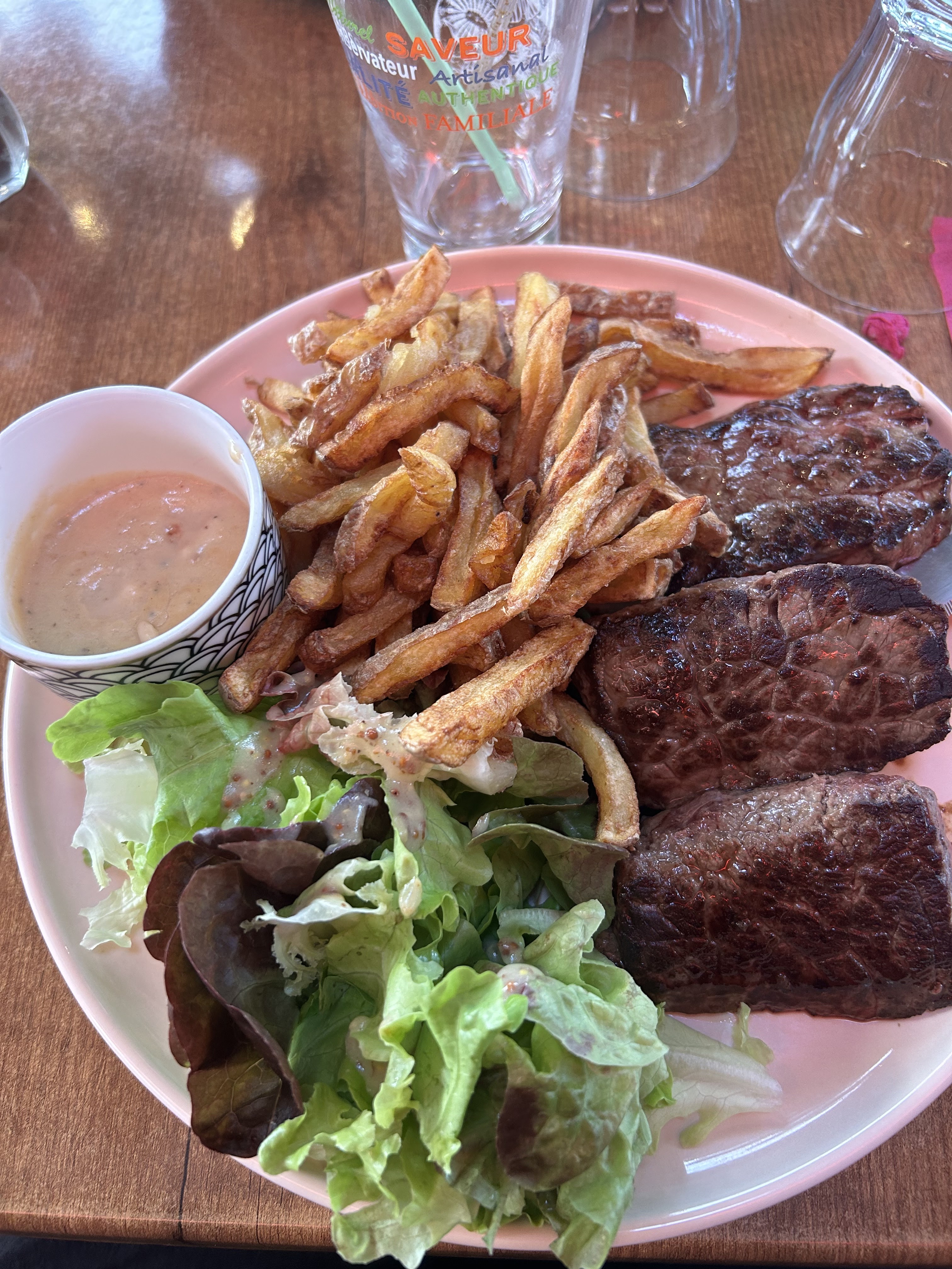 Je me suis régalée avec le plat du jour, foie de génisse, pommes de terre. Le cadre est vraiment très agréable. Je recommande.