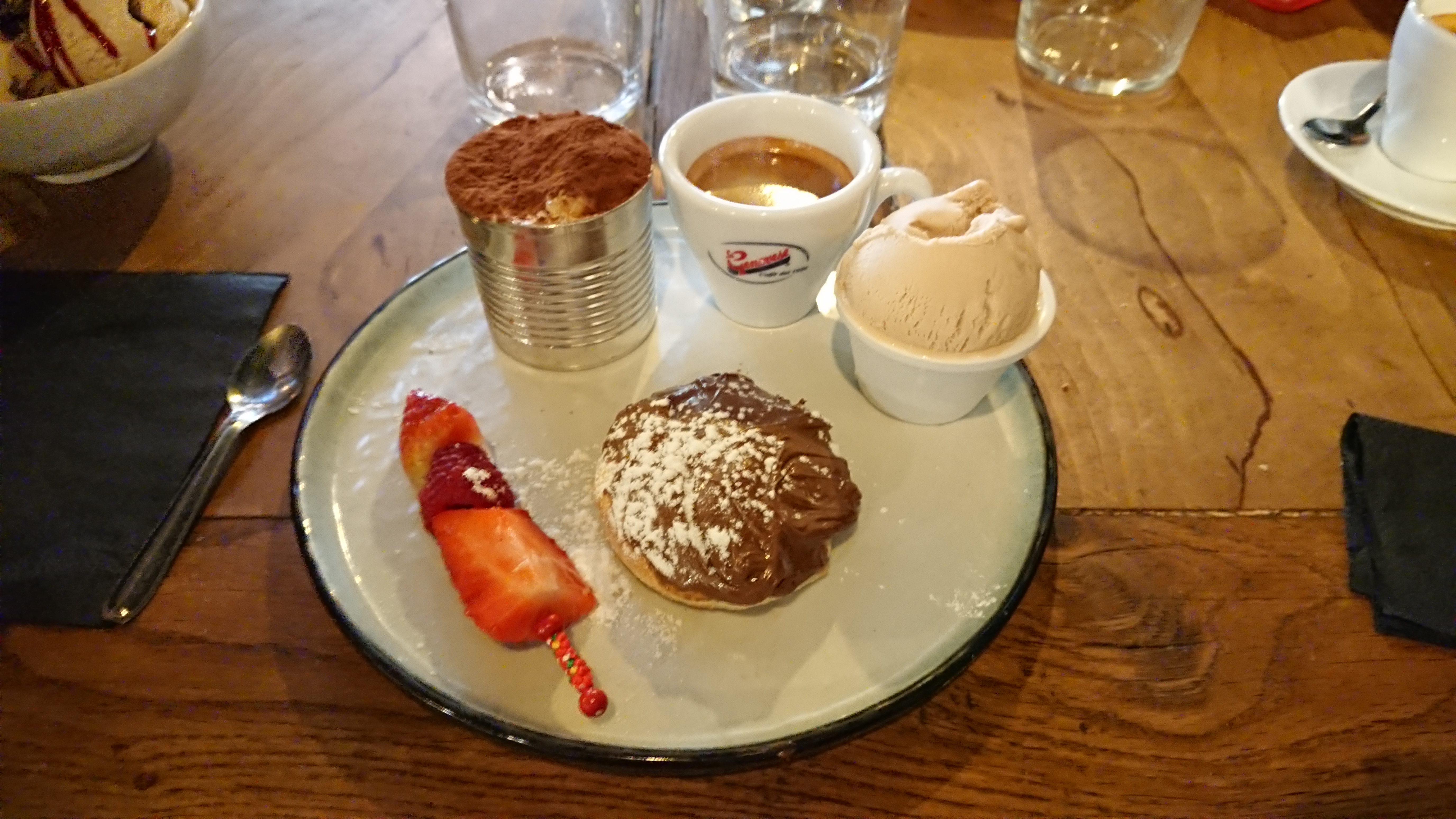 Nous avons été deux fois chez Alimento, un chouette resto que je recommande ! Le soir pour ses excellentes pizzas et son tiramisu délicieux, le week-end pour le très bon brunch, que l'on peut réserver en plus !