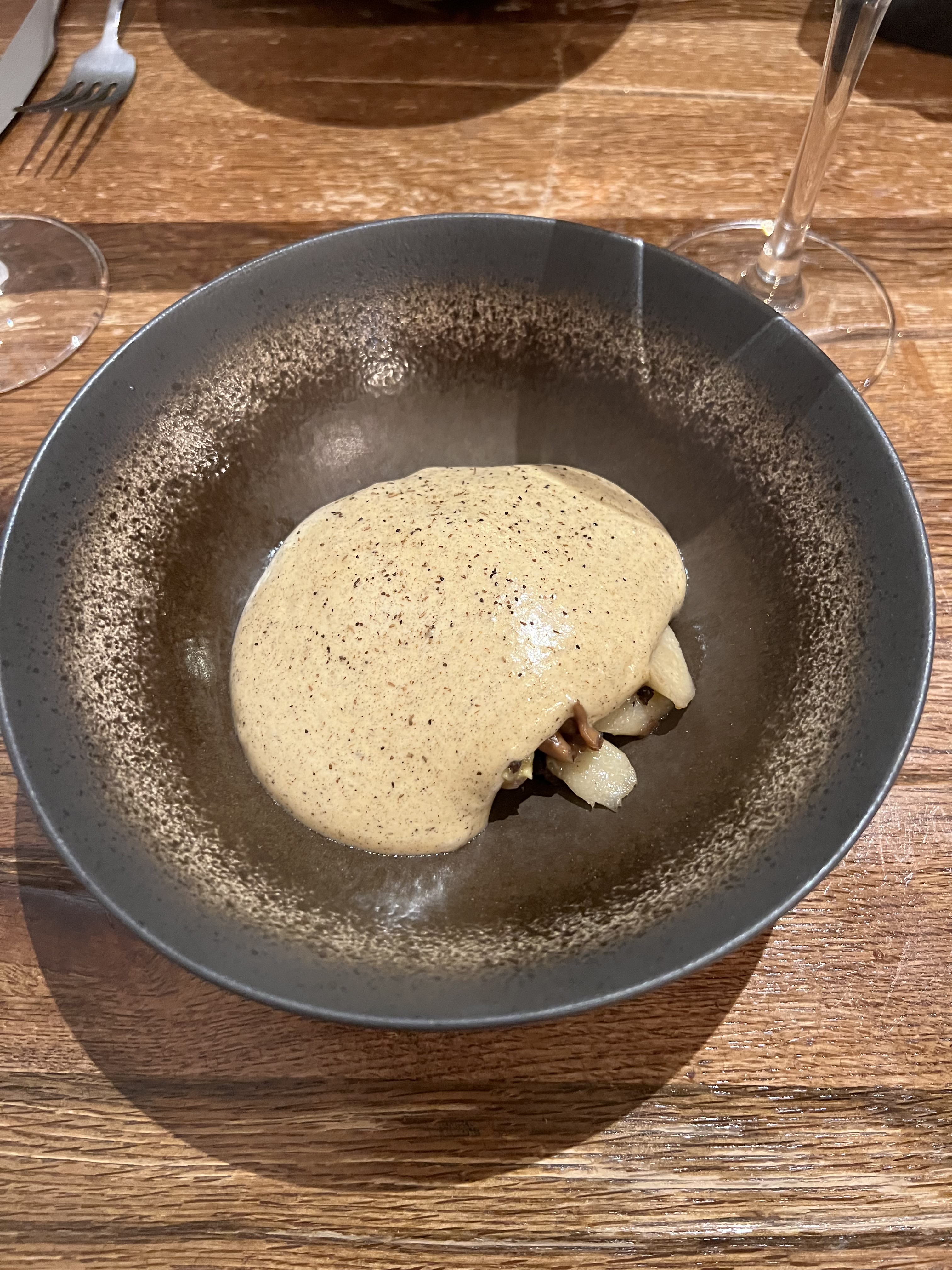 Excellent de bout en bout avec un vrai coup de cœur pour le dessert poire huile d'olive et olives noires torréfiées : un mélange étonnant mais quelle réussite ! Encore merci pour ce moment merveilleux pour nos papilles.
