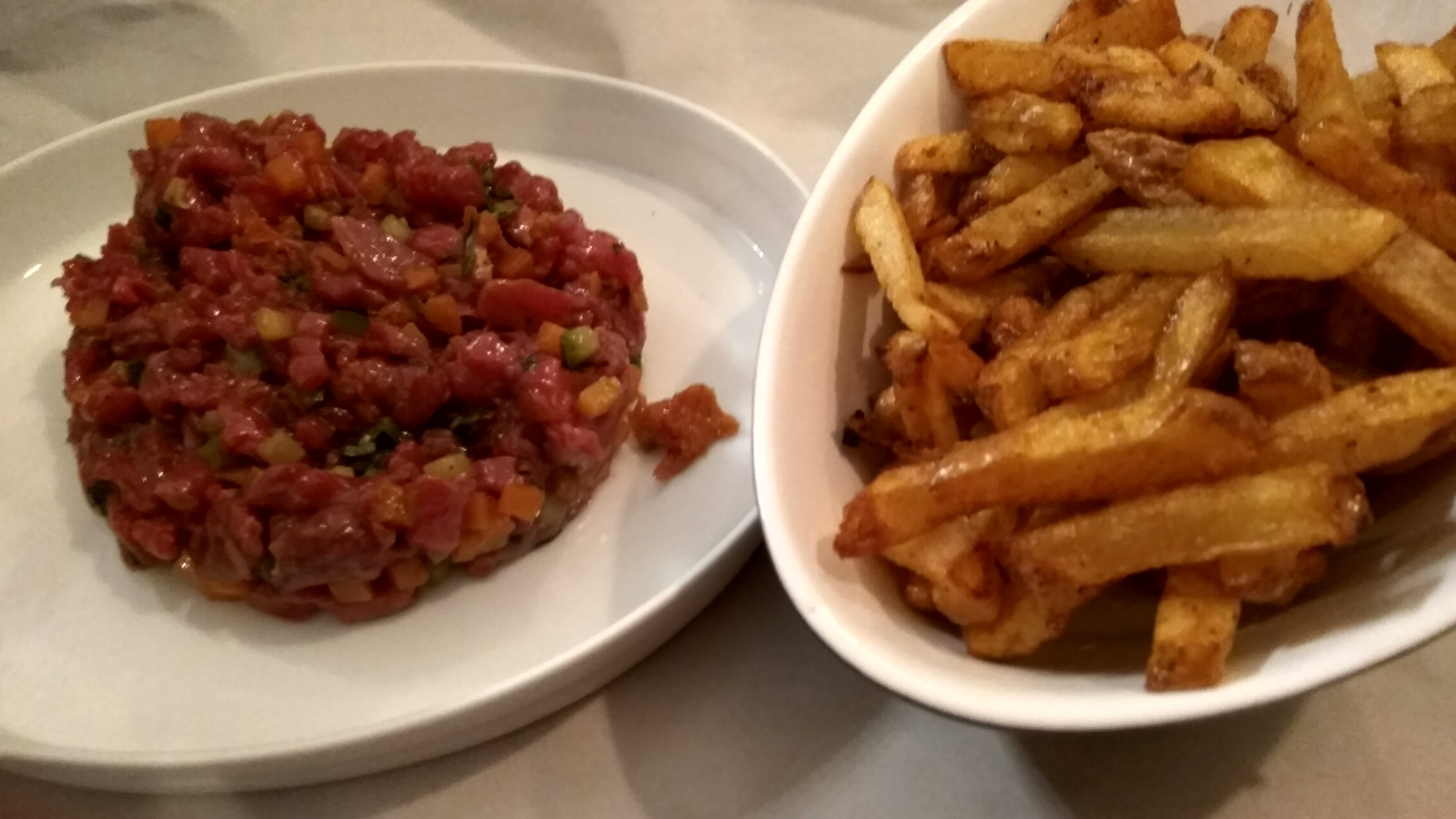 Aussi bien les tartares que les frites et les gateaux au chocolat sont très bons. Il faut tout de même prendre une portion XL pour manger a sa faim. Les vins sont très acceptables, même le moins cher de la carte. Le service est super et la serveuse très agréable. Seul bémol le prix est un peu élevé à mon gout.
