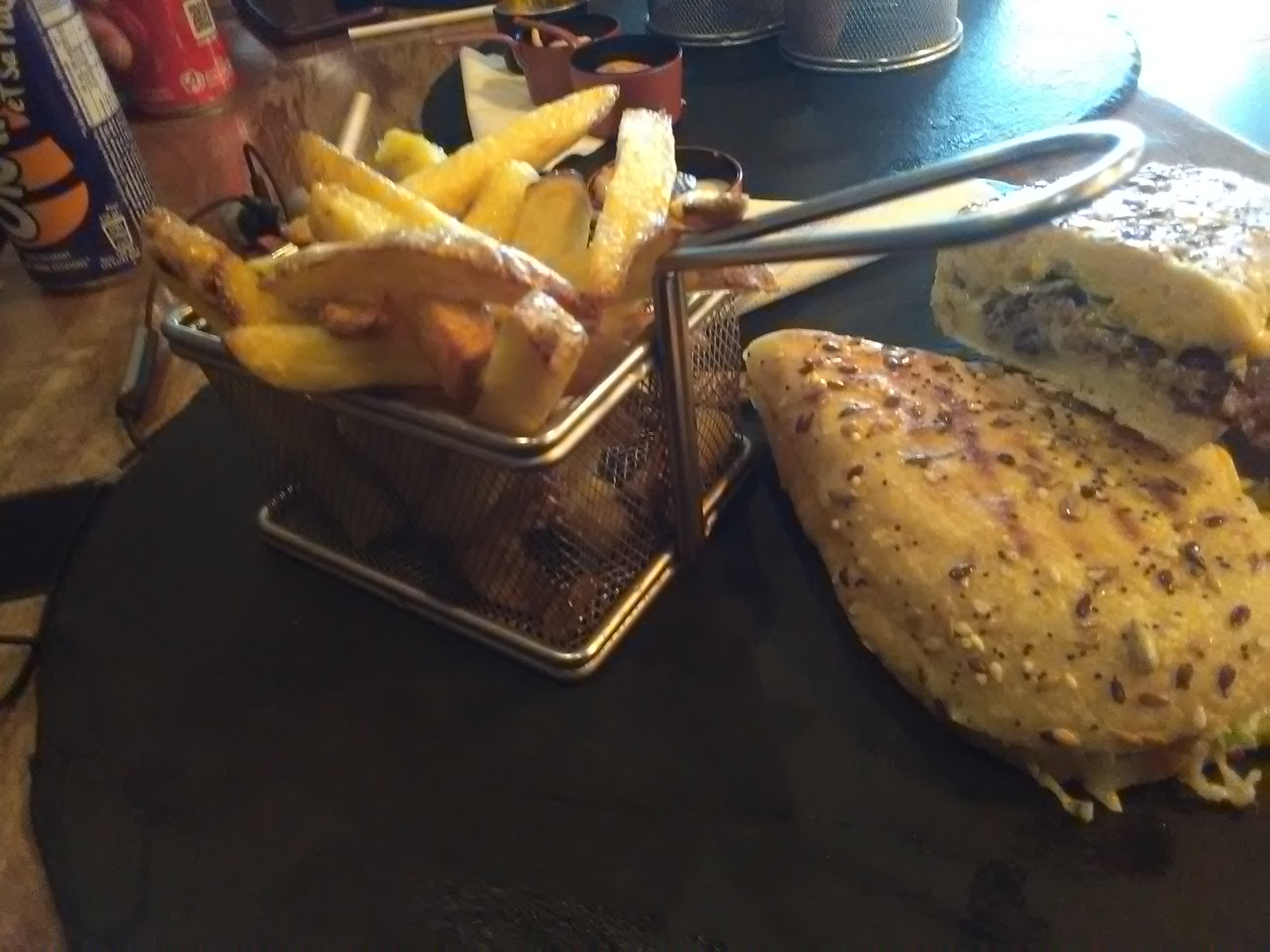 Le frites étaient bonnes et c’est le seul point positif. Le panini était très sec, le pain était sans doute de la veille. Pareil pour le burger, servi dur et froid. Quand on a fait la remarque au personnel, ils ont donné la faute à la boulangerie puis ont rigolé … très déçus!!!