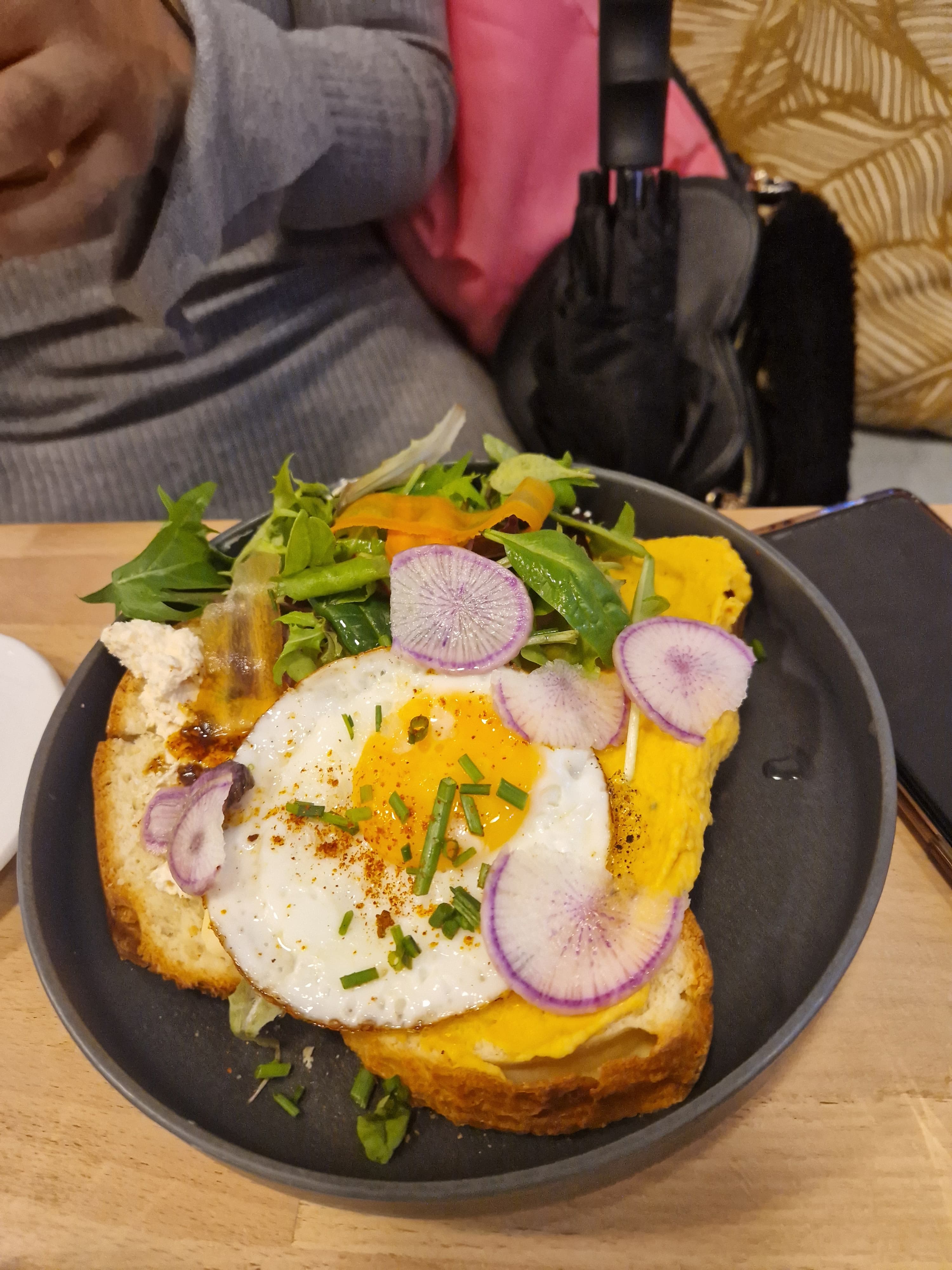 Tout est délicieux chez eux: les plats, les boissons et les desserts. Mon coup de cœur: la tartine thai avec supplément œuf et halloumi 🤤
