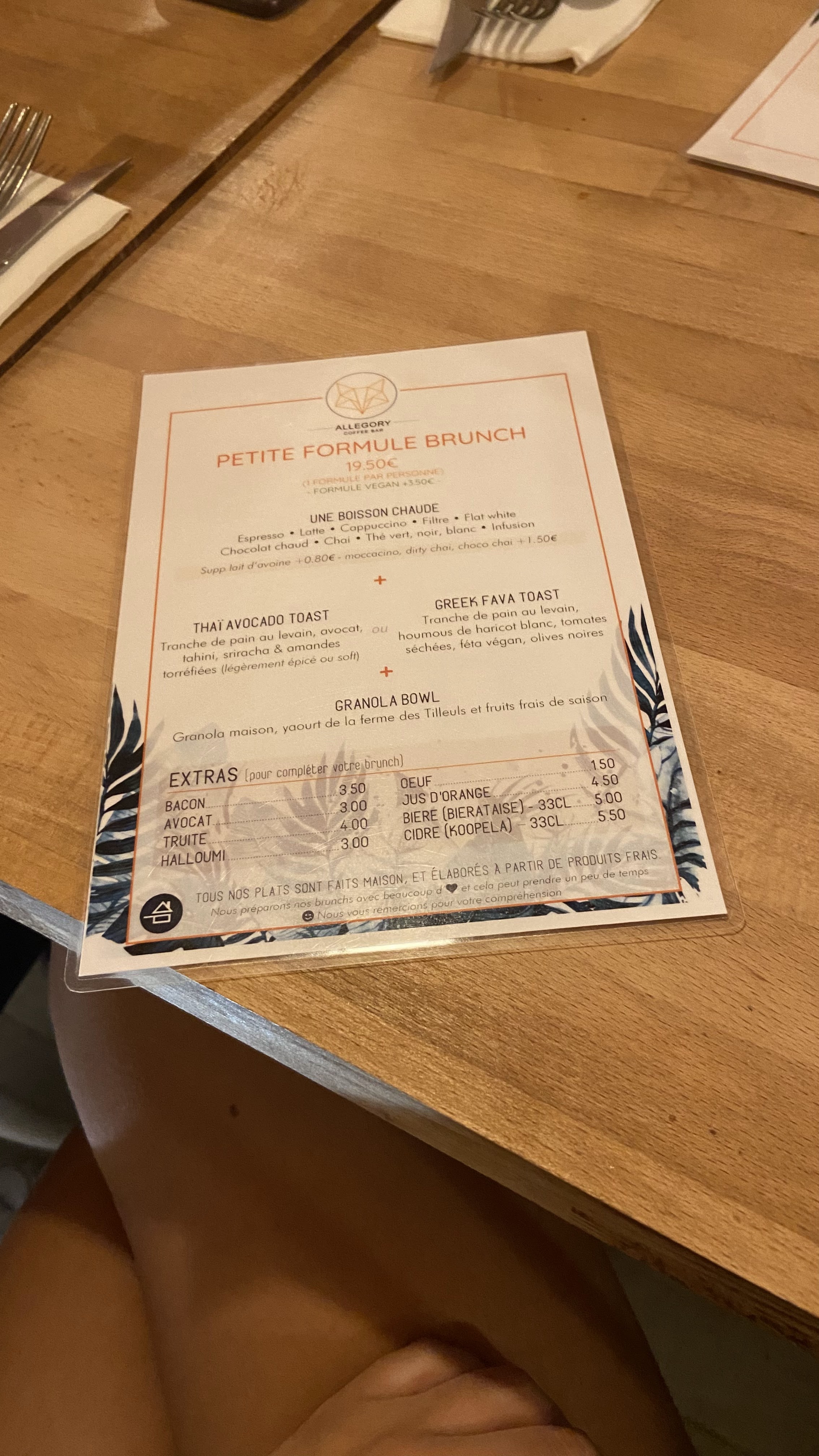 Une belle trouvaille ! Étant extrêmement fan de brunch, je suis toujours à la recherche de nouveaux lieux où me régaler. Bingo avec l'Allegory! Nous y sommes allés à 3 copines et nous avons toutes adoré le lieu et les plats. Je recommande !