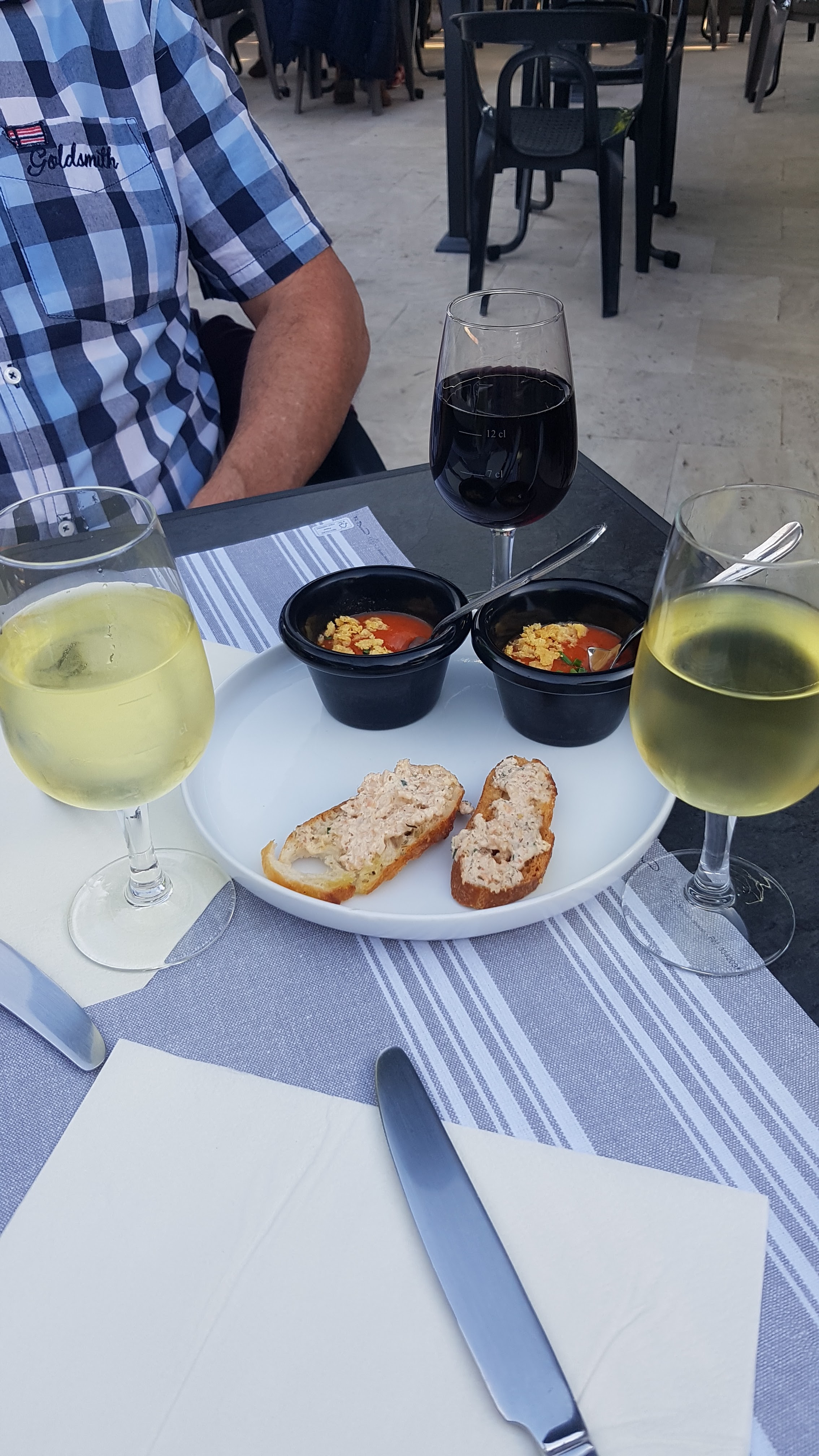 Dîner en couple Petite salade de la mer un régal, brochettes la viande esquise, croustillant 3 chocolats un délice. Serveur sympathique. Endroit design. Je recommande.