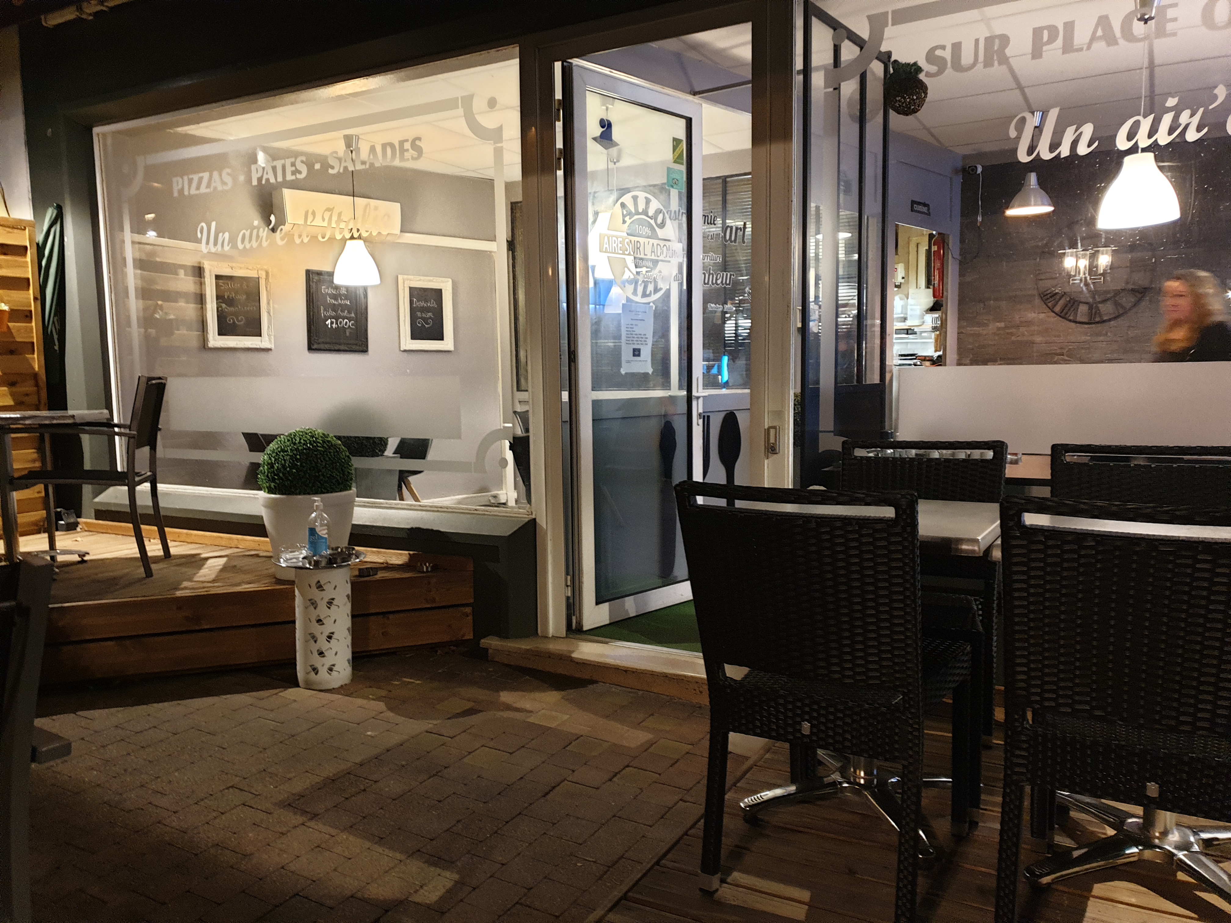 Nous y avons mangé en soirée, arrivé à temps car complet. Une cuisine juste délicieuse le risotto au foie gras ainsi que les pâtes au foie gras, une merveille. Nous connaissions les pizzas ( emporter) jamais déçu et là encore moins déçu. Bravo au chef nous nous sommes régalé.