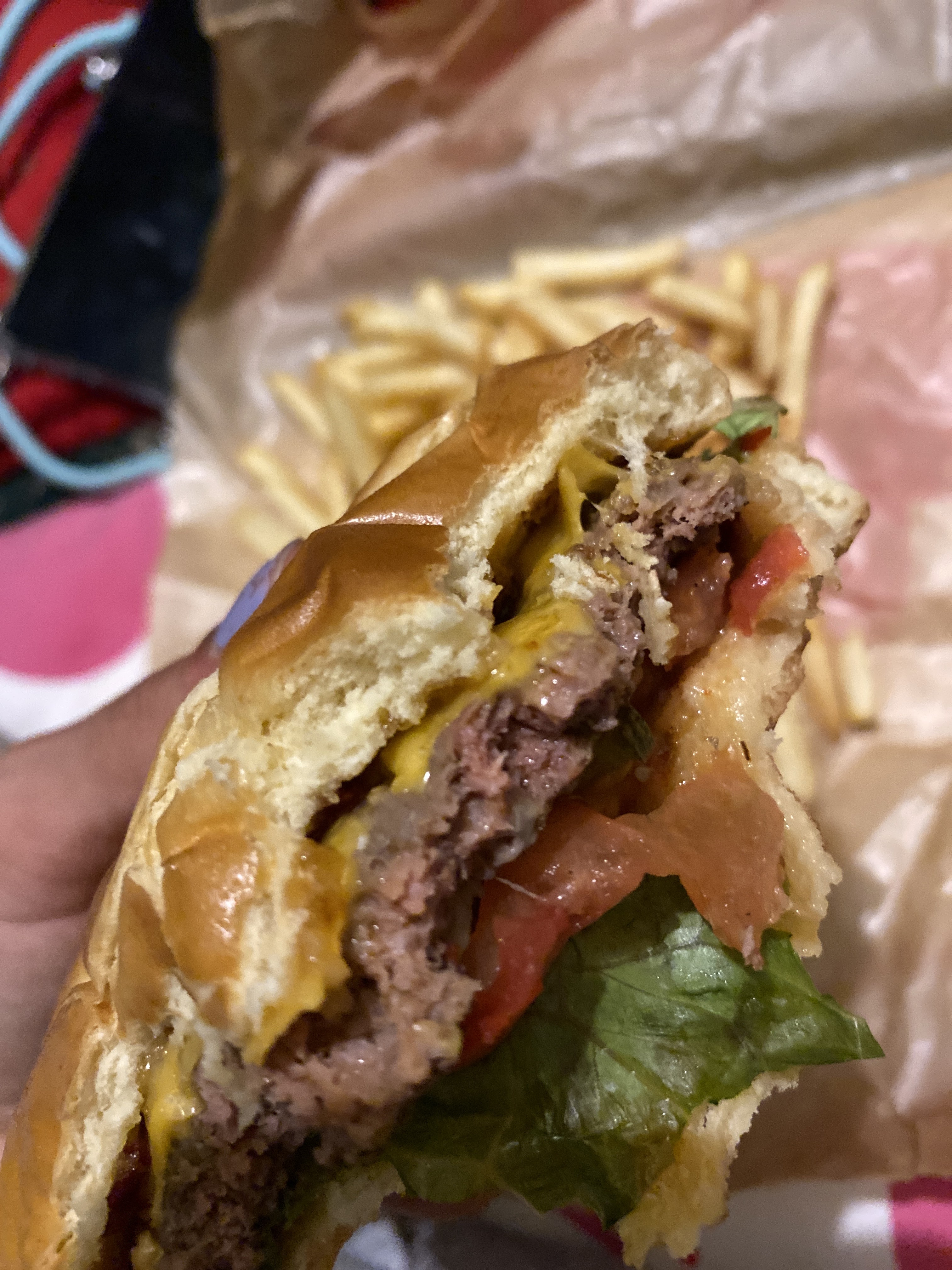 Le burger est pas trop mal . Bon il y a un petit peu d'attente et je trouve qu'il pourrait mettre un petit peu plus de frites . J'ai mis une photo pour que vous voyez ce que c'est il s'agit du menu Biggie .