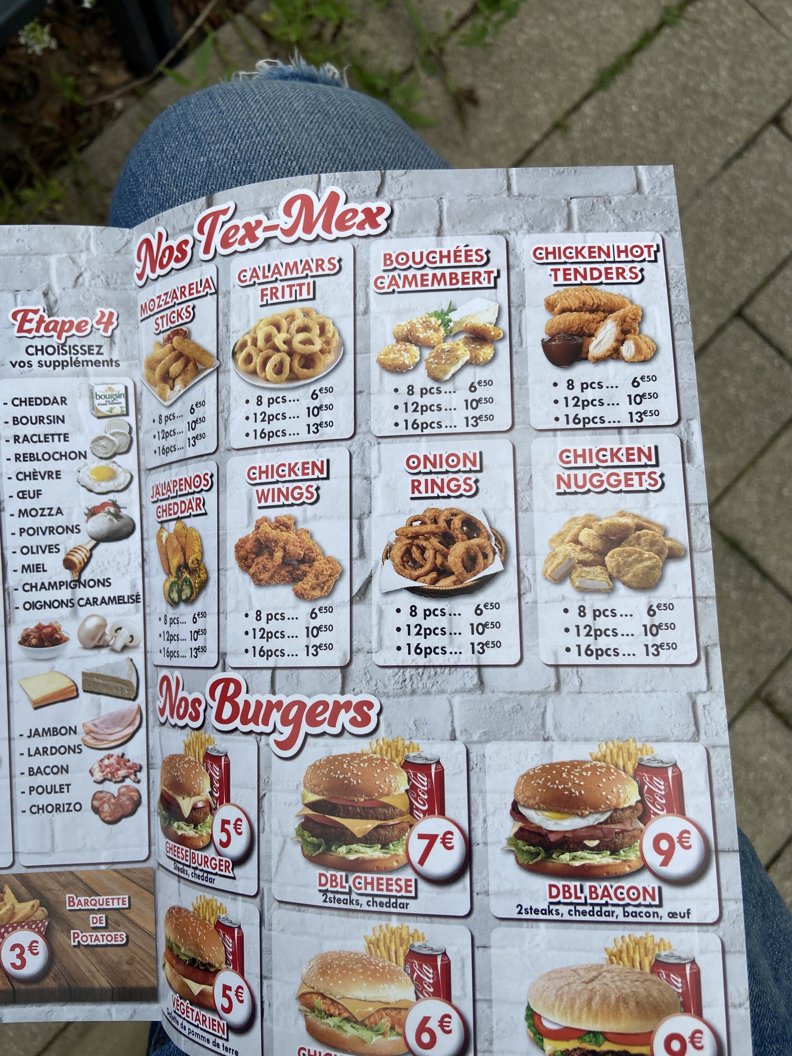Très très déçu Trop gras le prix annoncés sur les pub ne sont pas les mêmes à domicile J'ai appelé on m'a répondu que les oignons étaient en plus 50 cts de plus puis je demande sans frites plus de viande on me répond encore c'est un supplément mais on me mais quand même des frites Je trouve que c'est l arnaque Honte pour ce commerce
