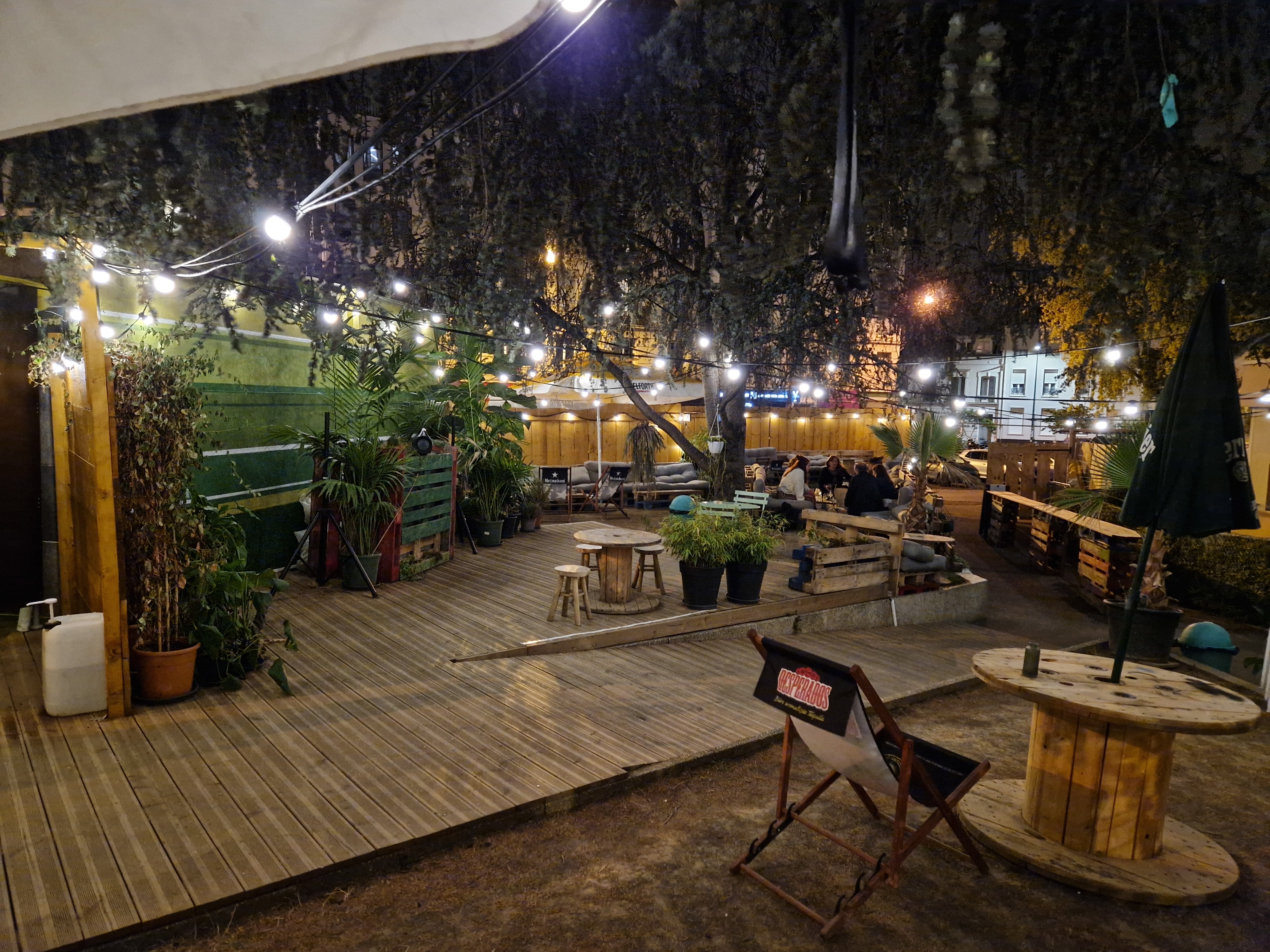 Endroit très sympathique, des p'tits salons en plein air fabriqués avec des bois de palettes, Carte de boissons et de quoi grignoter : planches charcuterie, ou fromage... à prix corrects!
